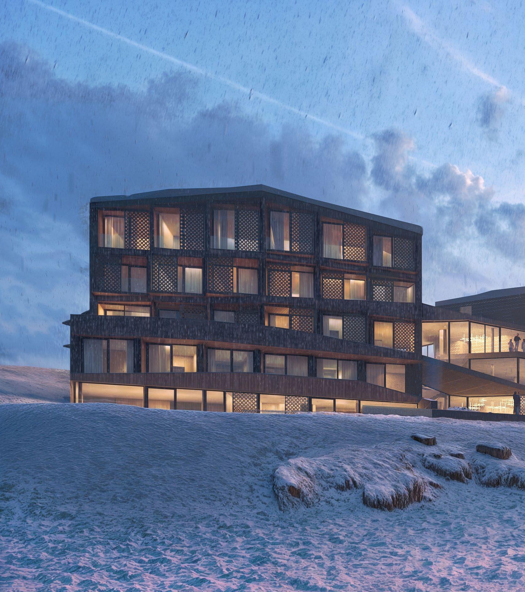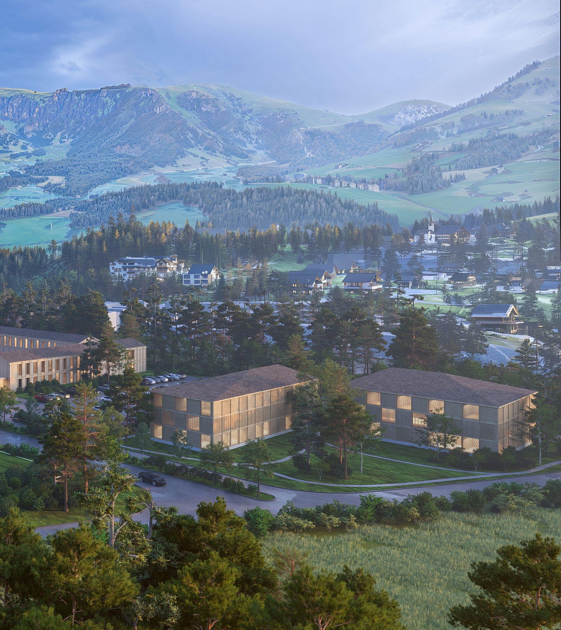 Dieses Sporthotel in den Schweizer Bergen wird an der Stelle eines alten Hotels gebaut, um den Bedürfnissen der modernen Zeit gerecht zu werden. Die Funktion bleibt unverändert: Im Winter wird es Wintersportler beherbergen und in den wärmeren Monaten ein beliebtes Ziel für Modellflugzeug-Fans - alles mit einem Wellnessbereich, mehr Zimmern und mehr gastronomischen Einrichtungen.