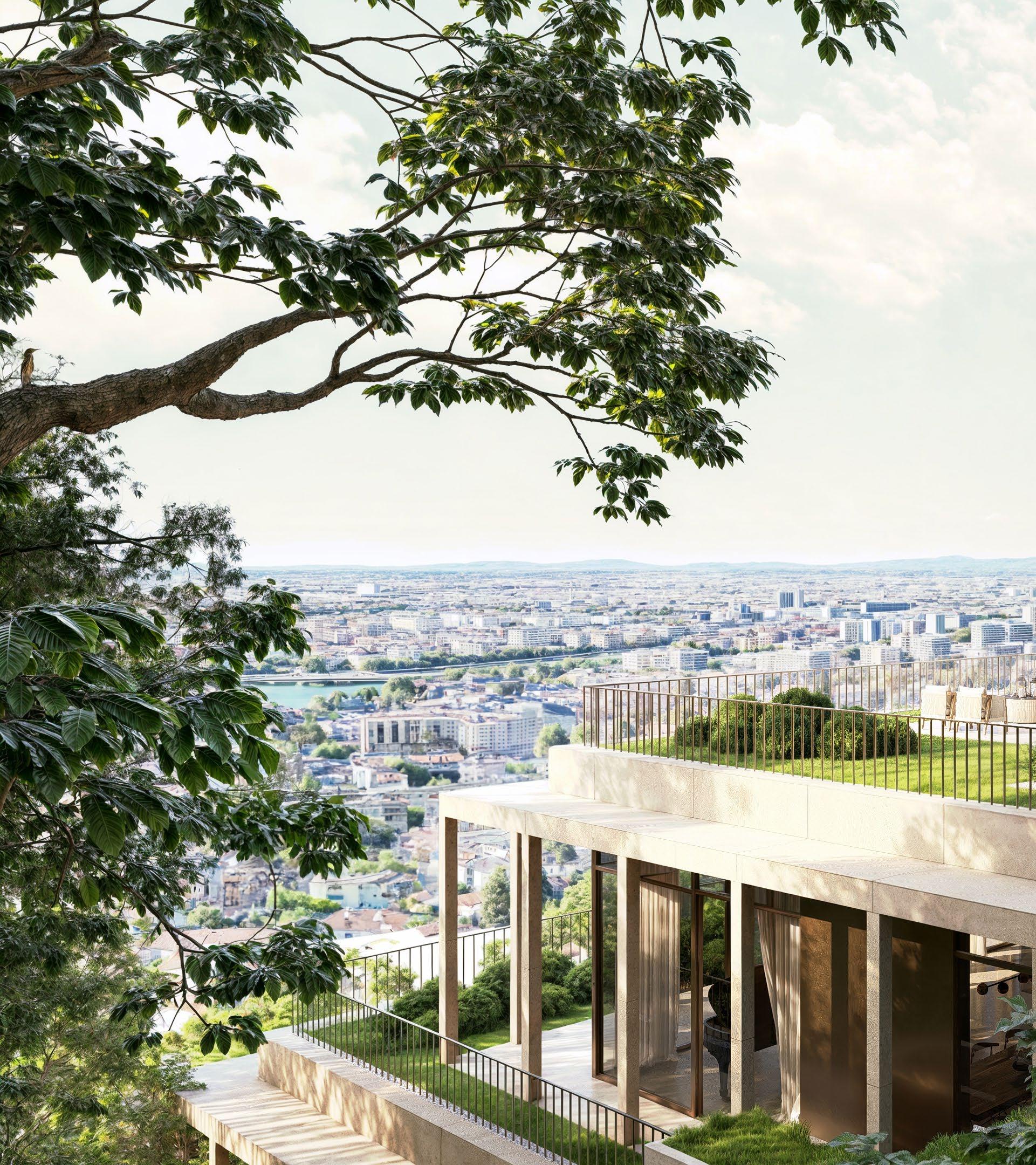 This unique house with large covered terraces and pillars is situated on a steep plot above the town. The whole building is designed around the viewand the connection with nature - it was my task to present this design principle and to find the exterior cladding, and details that fits the overall concept.