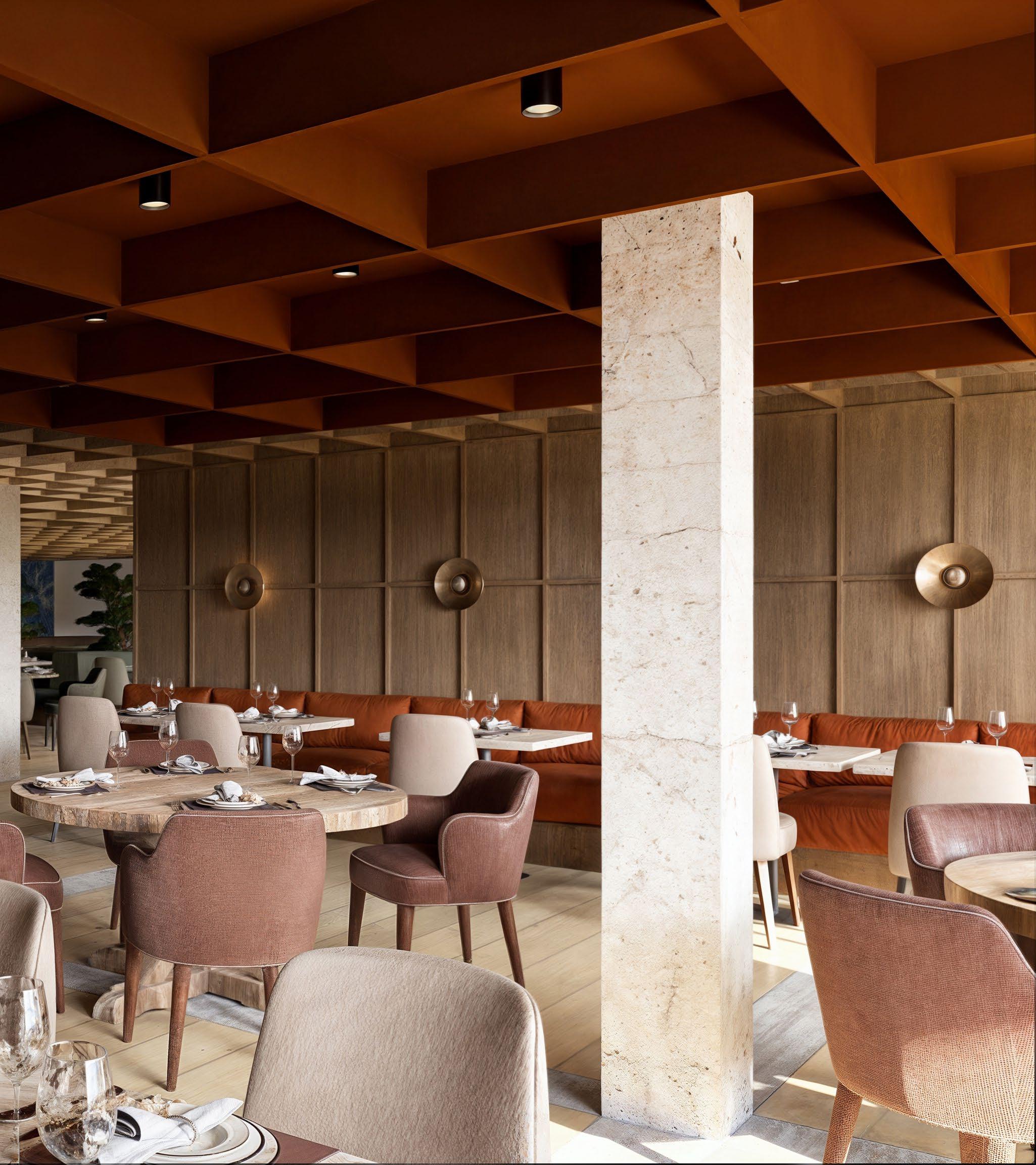 Auch das Restaurant wird im Rahmen der Gesamtrenovierung des Hotels komplett renoviert. Das neue Innendesign wird aus Holzerstellt, die an den alten Look erinnert und durch eine moderne Kassettendecke wunderschön ausgeglichen wird. Das Atrium ist das zentrale Element des Restaurants, das nicht nur attraktiv, sondern auch funktional ist und dafür sorgt, dass so viel natürliches Sonnenlicht wie möglich in den Raum eindringen kann.