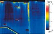 • du e ró nice termoizolacyjno ci w przegrodzie – jasne obszary na termogramie, w porównaniu z ciemnymi, odpowiadaj powierzchni o s abej termoizolacyjno ci;