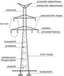 Rys. 1.1. Podstawowe elementy linii i konstrukcji wsporczej – nazewnictwo