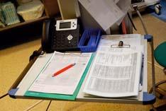 Ale pacjent niedowidzi…, gdzie są okulary?... W torbie?... Nie… W szafce?... Też nie. … Może na stoliku?… Są…, wreszcie… I bęc…, 6 stron „maczkiem”…