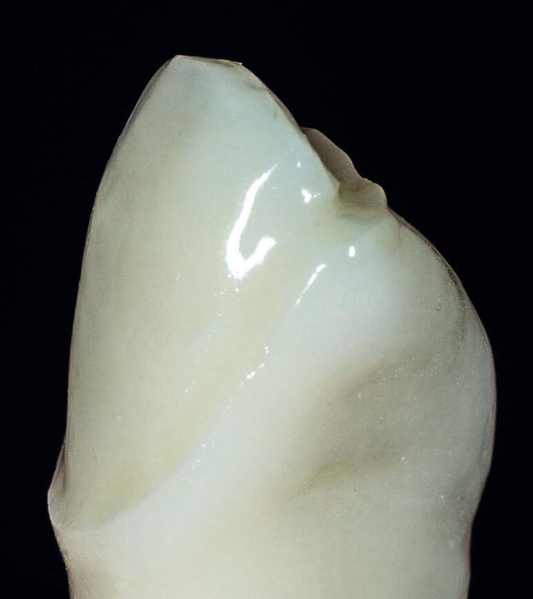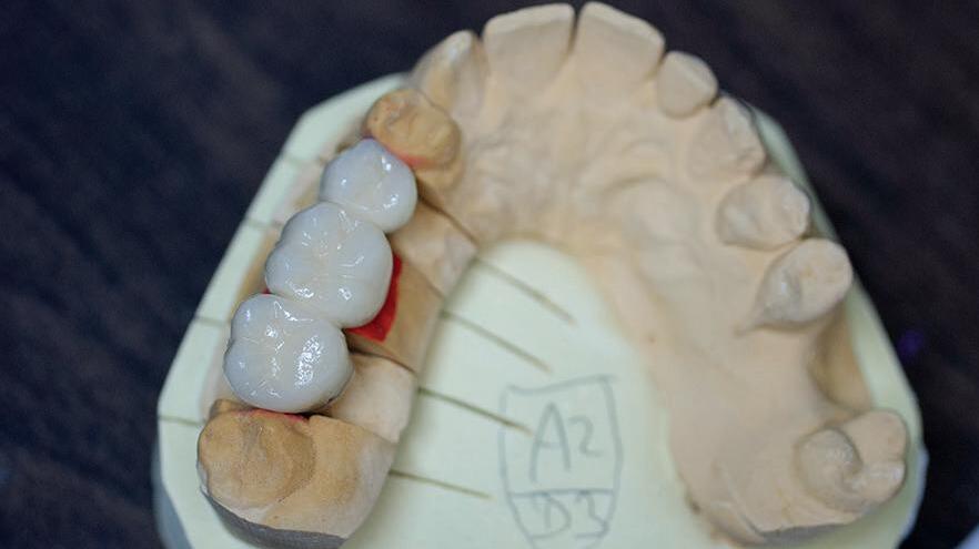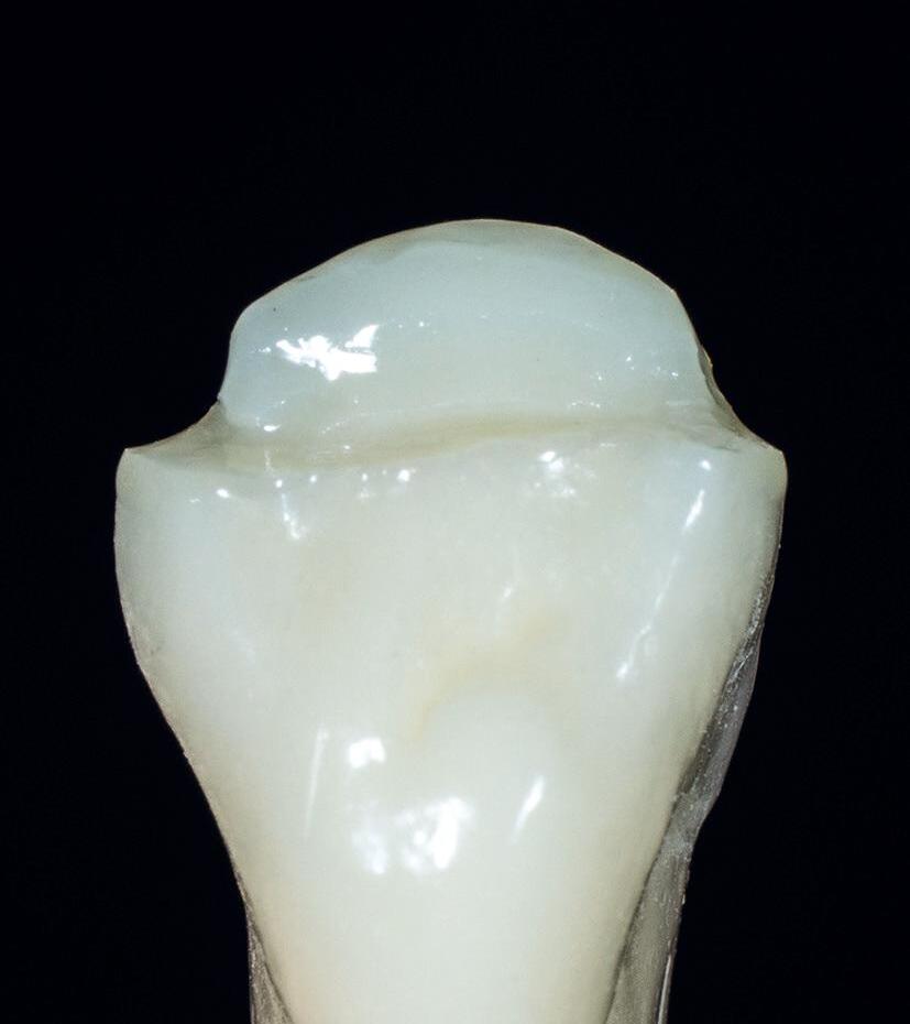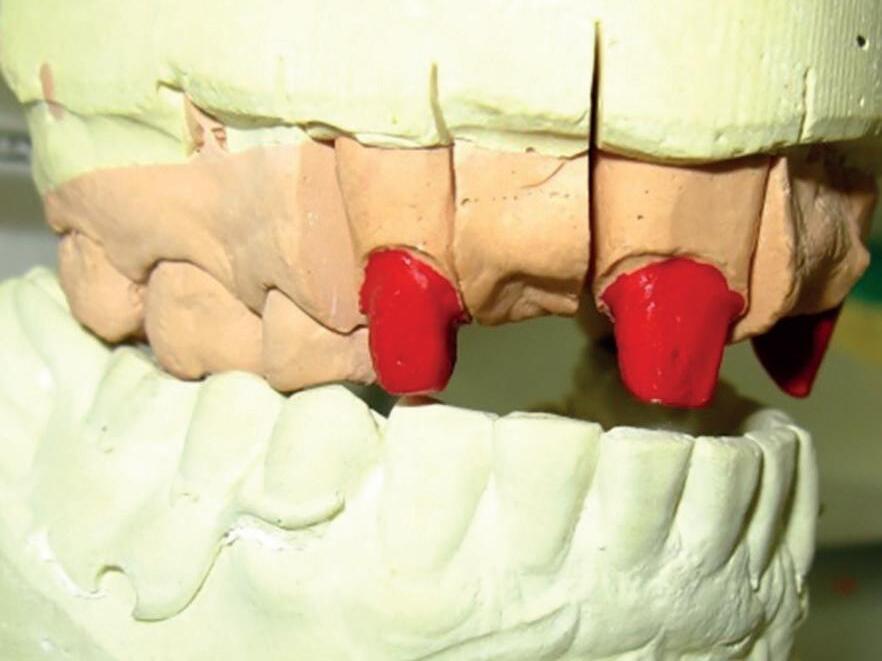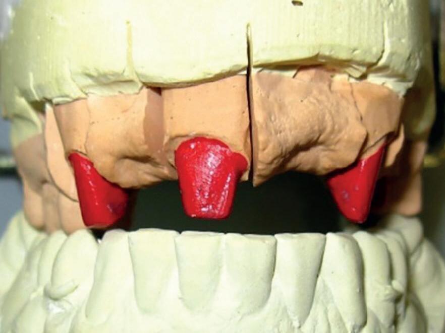Granica preparacji i opracowane filary. Precyzyjne odwzorowanie stopnia oraz oszlifowanych filarów umożliwia technikowi dokładne wymodelowanie i dopasowanie podbudowy mostu na modelu, co stanowi warunek niezbędny do uzyskania harmonijnie wkomponowanego uzupełnienia w tkanki i struktury jamy ustnej. Niedokładność w adaptacji podbudowy mostu w obrębie granicy preparacji może spowodować wystąpienie stanów zapalnych dziąsła brzeżnego, a w konsekwencji doprowadzić do recesji