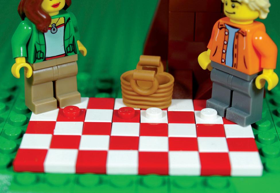 Anna, Matt i koszyk piknikowy byli przymocowani do koca za pomocą ukrytych płytek 1 × 1.