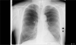 Zdjęcie RTG klatki piersiowej wykonano 3 miesiące temu – nieco wzmo żony rysunek naczyniowo ‑ oskrzelowy obu płuc.