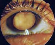 Figure 8.45. Retinoblastoma – tumor located in anterior chamber of the eye (a), iris neovascularization and secondary glaucoma (b).
