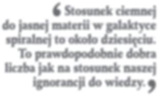 ‘ Stosunek ciemnej do jasnej materii w galaktyce spiralnej to około dziesięciu. To prawdopodobnie dobra liczba jak na stosunek naszej ignorancji do wiedzy.’