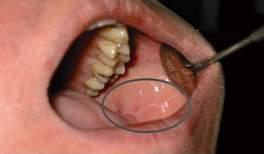 Badanie wewnątrzustne rozpoczynamy od badania uzupełniającego badanie mięśni. W tym badaniu dostępne są przyczepy i brzuśce mięśnia skrzydłowego bocznego (ryc. 5.2), skrzydłowego przyśrodkowego, żwacza oraz mięśni nadgnykowych.