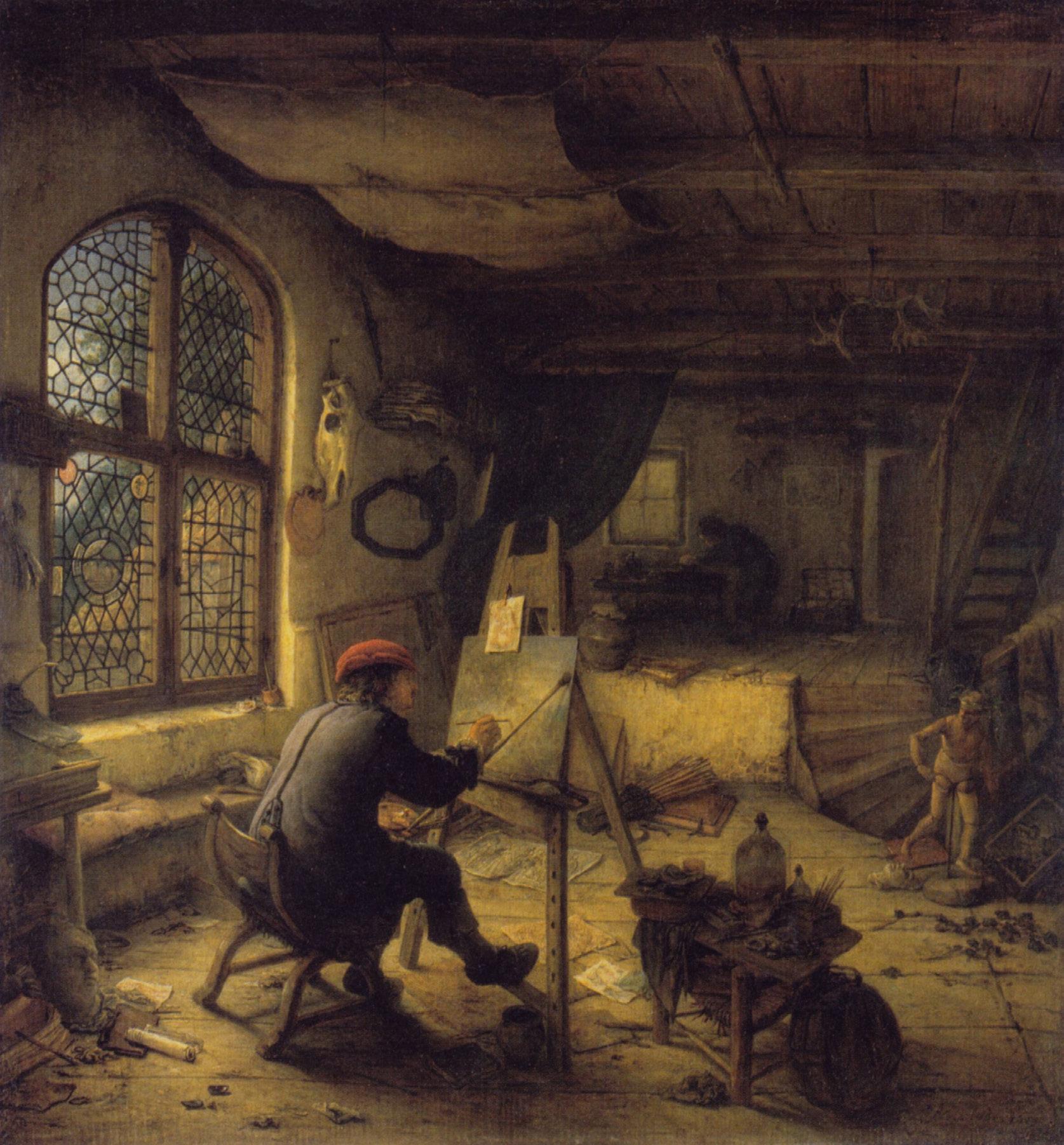Adriaen van Ostade, „Malarz w pracowni”, 1663, obraz na desce, 38 × 35,5 cm, Gemäldegalerie Alte Meister, Drezno