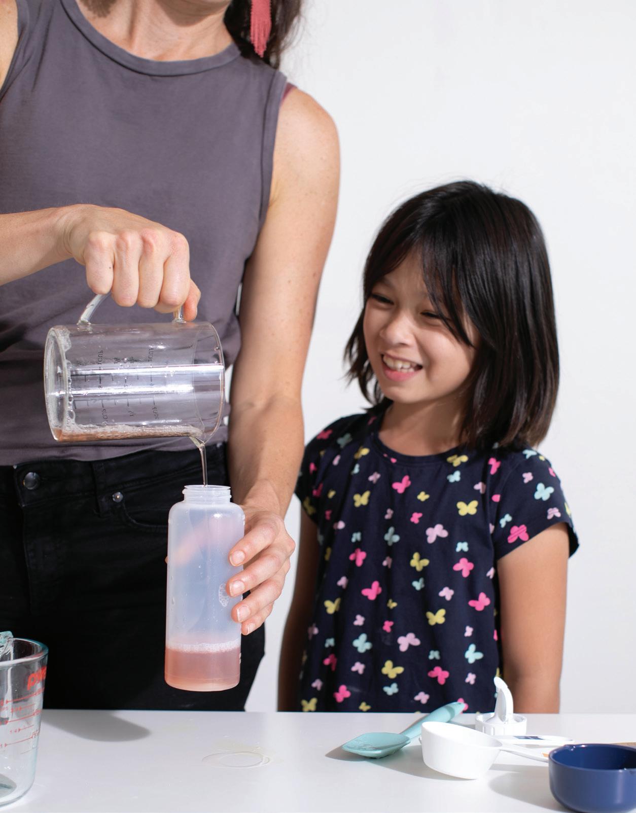 6. Rozlej roztwór do 2 spośród 4 przezroczystych szklanek.