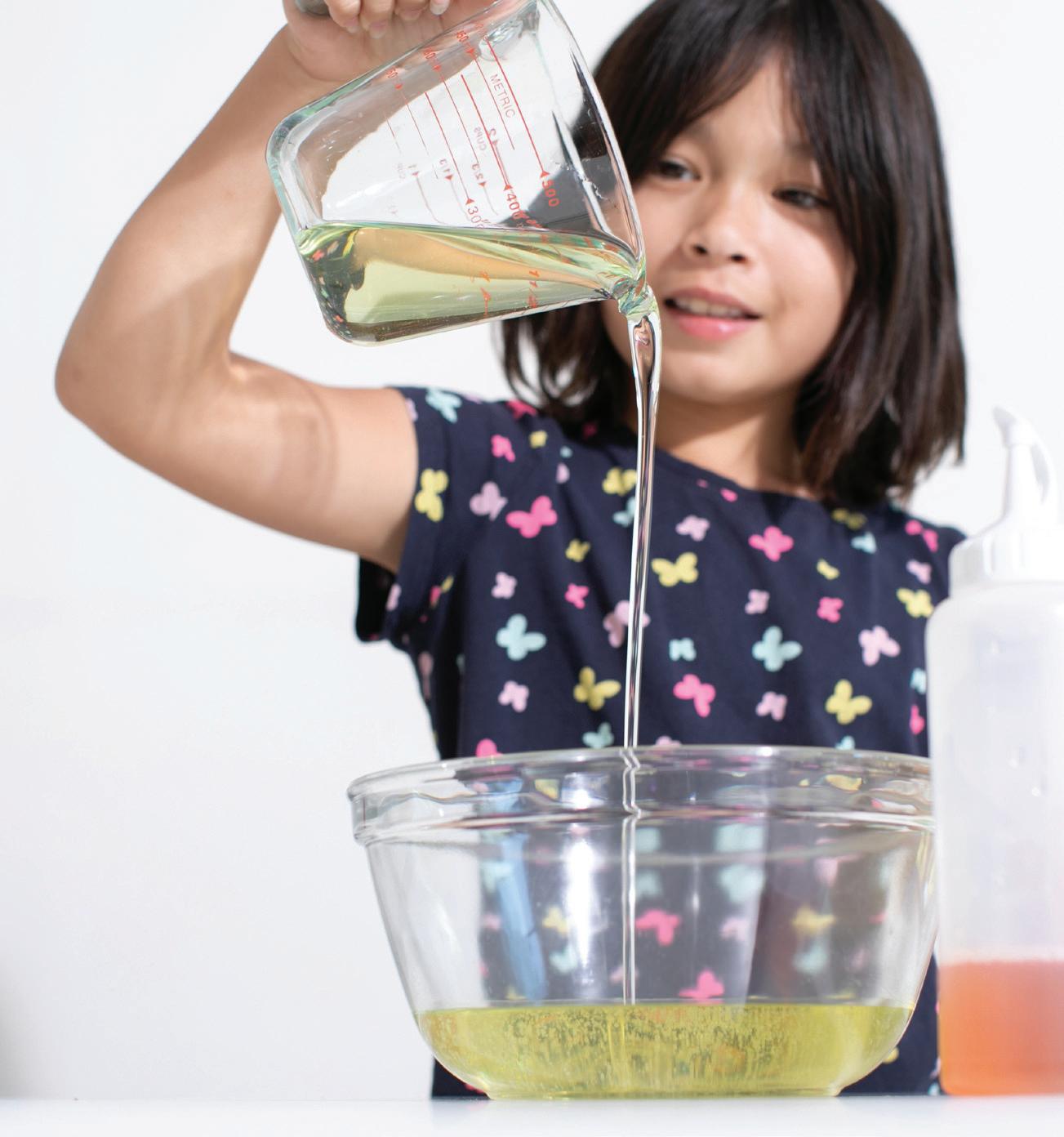 Jak i dlaczego: Ochładzana żelatyna zmienia stan skupienia z ciekłego na stały. W tym doświadczeniu stało się to tak szybko, że powstały małe kuleczki nieprzywierające do siebie, ponieważ żelatyna nie rozpuszcza się w oleju. W całym tym procesie smak soku pozostał niezmieniony.