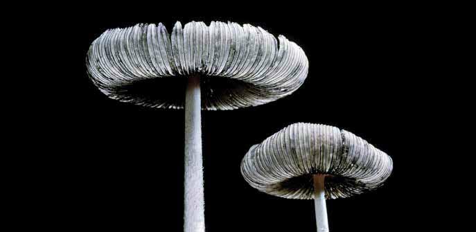 Hipnotyzuje mnie pozorny bezruch grzybów. Owocniki wyrastające z ziemi wyglądają jak dekoracje. Badając je pod mikroskopem, widzimy jednak ciągły strumień zarodników uwalniających się z blaszek kapeluszy. Wiemy z obliczeń, że pojedynczy owocnik produkuje około 30 tysięcy zarodników w ciągu jednej sekundy, co znaczy, iż w swym krótkim istnieniu wytwarza ich miliardy każdego dnia!