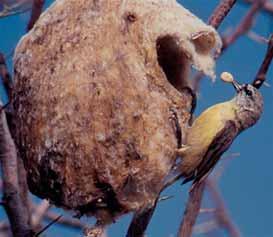 Szerokodzioby z Azji, niektóre tyrankowate Nowego Świata oraz garncarzowate z Ameryki Południowej zniechęcają drapieżniki, budując kuliste gniazda na końcach długich winorośli lub wąsów czepnych. Remizki żółtobrzuche (Anthoscopus minutus) tworzą wiszące, kuliste konstrukcje z fałszywym wejściem, aby udaremnić ataki drapieżników. Widoczny otwór z boku gniazda w rzeczywistości prowadzi do ślepej komory. Prawdziwym wejściem jest ukryta szczelina w dachu fałszywego wejścia, która zamyka się za rodzicem, gdy wchodzi i wychodzi z prawdziwej komory lęgowej (ryc. 11.14).