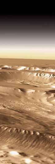 Sol to określenie długości okresu obrotu Marsa względem Słońca = 1 marsjański dzień słoneczny. Ekscentryczność to charakterystyczna wielkość opisująca kształt orbity ciała niebieskiego, wskazująca, jak bardzo ten kształt odbiega od okręgu. Wartość 0 oznacza dokładnie orbitę kołową, wartości między 0 a 1 opisują orbity eliptyczne (im większa wartość, tym bardziej spłaszczona elipsa), a wartości większe niż 1 dotyczą orbit otwartych. Orbita Marsa ma ekscentryczność równą 0,0935, a orbita Ziemi – tylko 0,0167. Zdjęcia na s. 120 i 121: NASA / JPL / MSSS; NASA / JPL-Caltech / University of Arizona (2); NASA / JPL-Caltech / Arizona State University