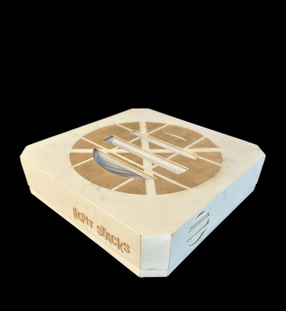 This project included the creation of a box to house the pieces so that it can be assembled by another user in the future. To create the box, museum board was lazer cut from a design created using Adobe Illustrator. The box components can be seen underneath. The box design includes a lazer cut design of the front and back panels of the lightbox structure. The design includes an acrylic panel on the front of the box to add weight to the box for a better box opening