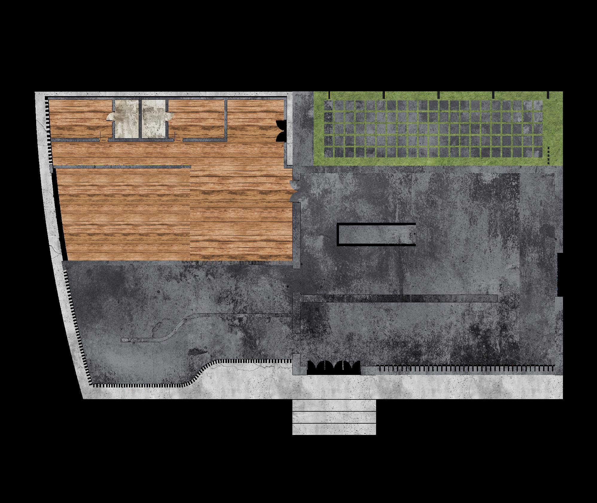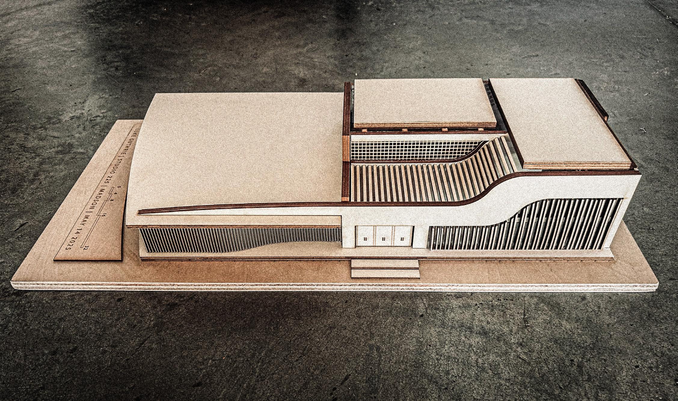 Materiality defines the character of the project. Cast-in-place limestone grounds the architecture in the industrial history of the site, while vertical Corten steel louvers add warmth, texture, and a weathered contrast. These elements are expressed honestly, highlighting process, permanence, and time.