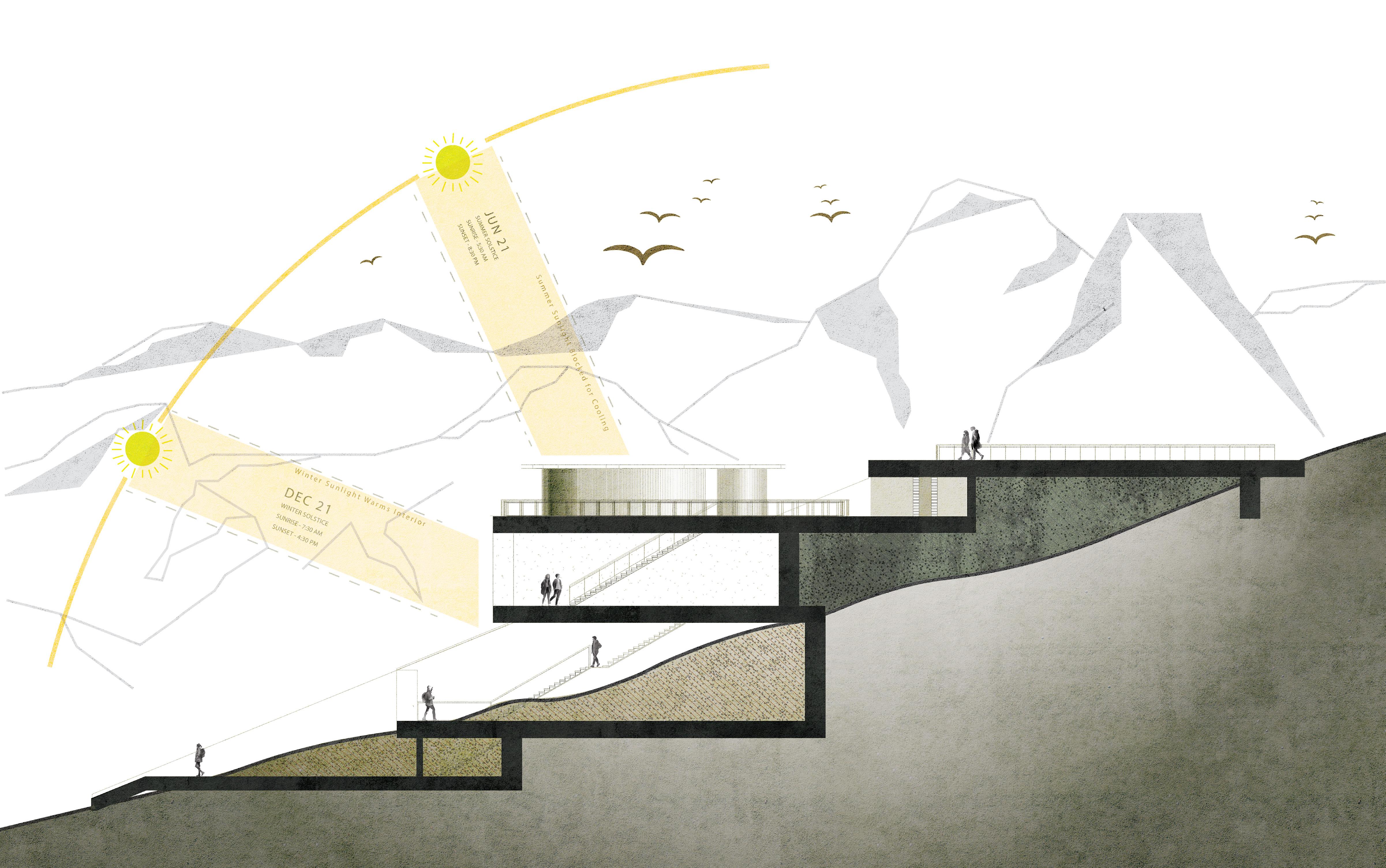 Built into the slope beneath Tohakum Peak, the observatory uses the land’s natural grade for stability, thermal efficiency, and minimal site disturbance. Its embedded form allows the structure to merge with the mountainside rather than sit on top of it.