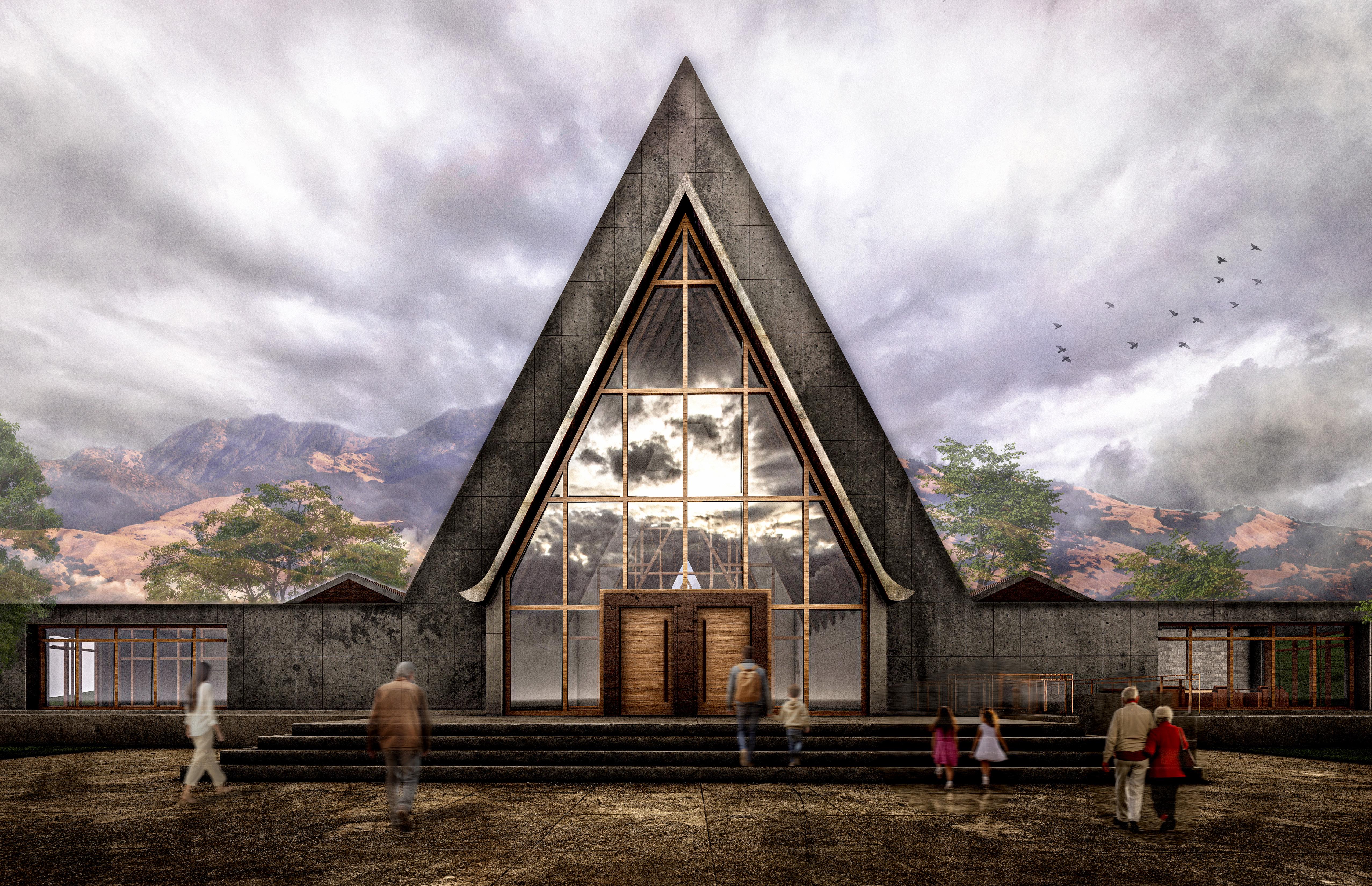 As you enter, light begins to guide the path forward. The rough exterior gives way to warm timber framing, stained glass, and a space that lifts both the eye and the spirit. Material shifts from concrete to wood, and the architecture becomes more open, welcoming, and expressive.