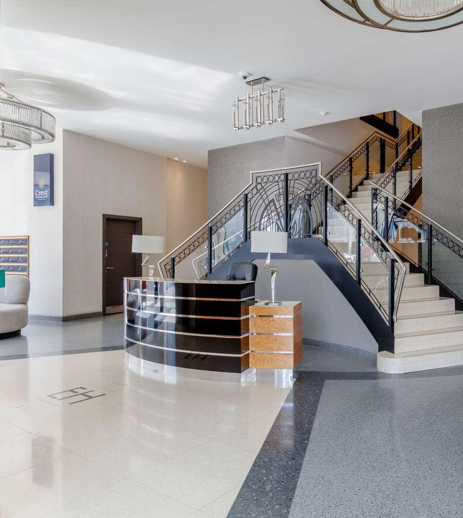 Access to apartment 455 is either through a grand concierge entrance hall or via secure art deco themed electric gates down to an underground carpark where the flat benefits from an allocated car parking space.