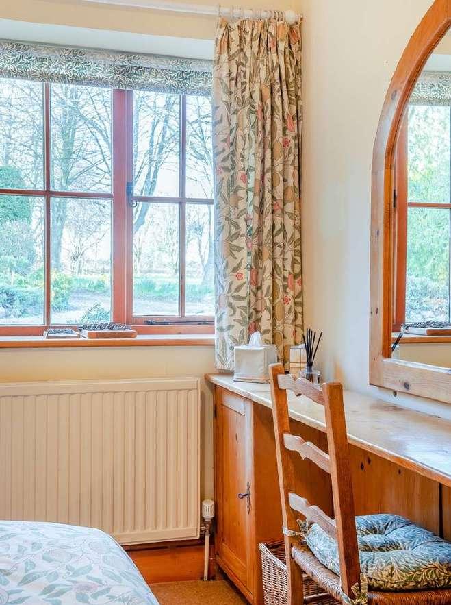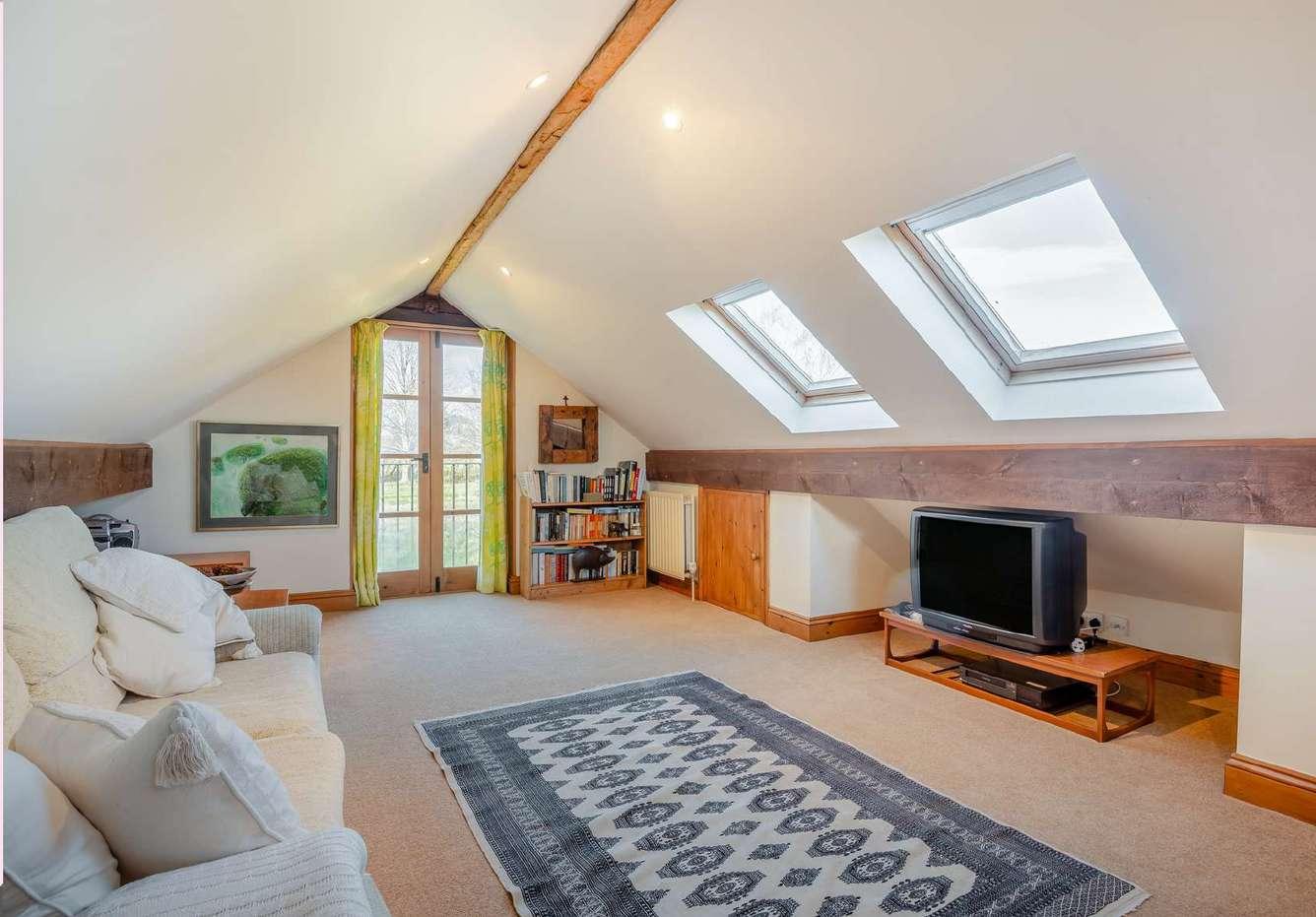 White walls perfectly contrast with the wooden doors, windows and exposed beams throughout the property and every room enjoys a pleasant outlook or view.