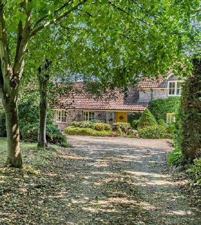 Approached via a long sweeping driveway with an avenue of trees and spring flowers, the detached property is screened from the road and enjoys privacy and a surprisingly well-connected country setting.