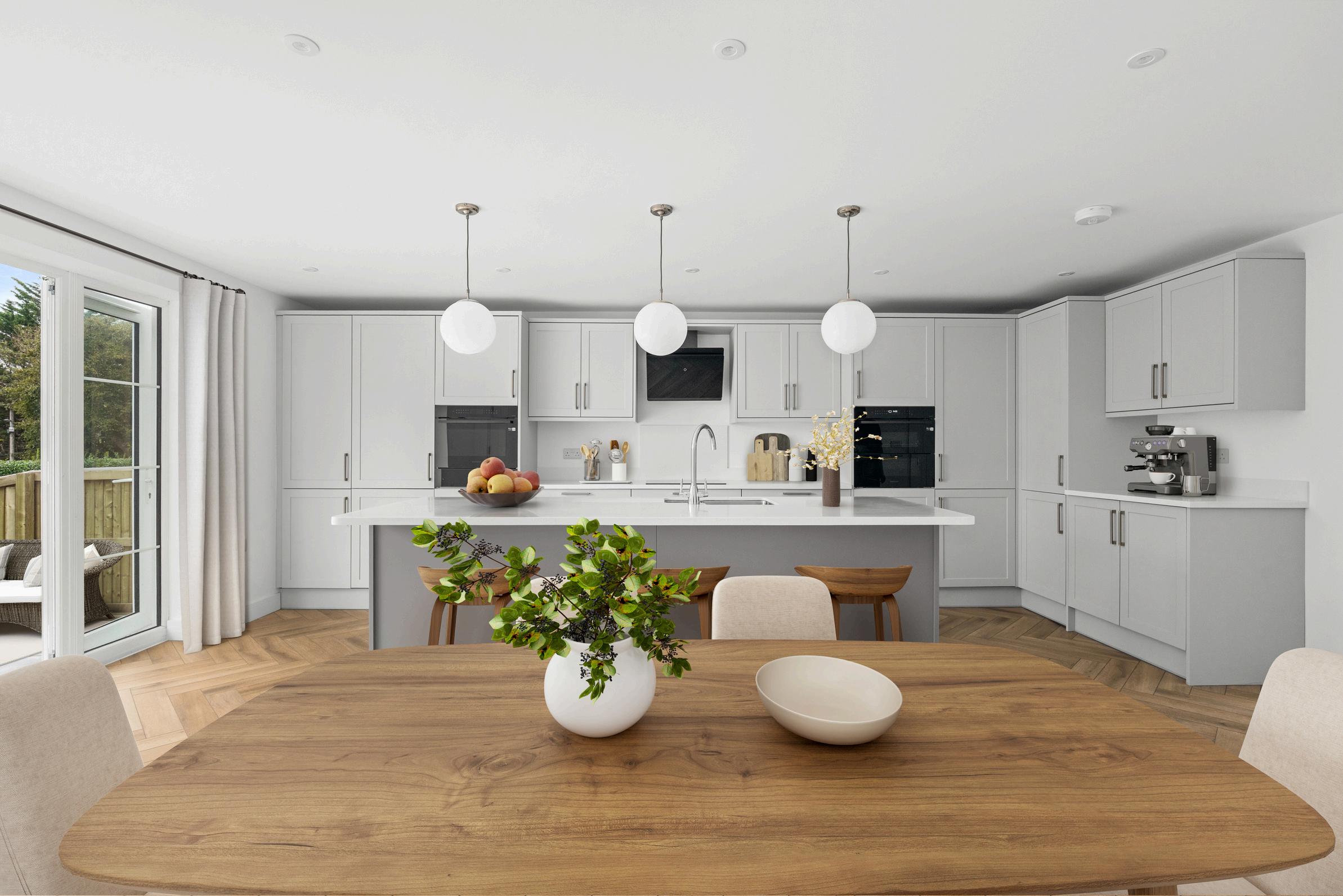 The bespoke kitchen features luxury integrated appliances and elegant Quartz worktops, while the contemporary bathrooms are fitted to a high-quality Every detail has been considered, from the feature lighting, tiling, Herringbone vinyl flooring, high quality carpets, electric car charging point landscaped gardens, paved parking and large integrated garage.
