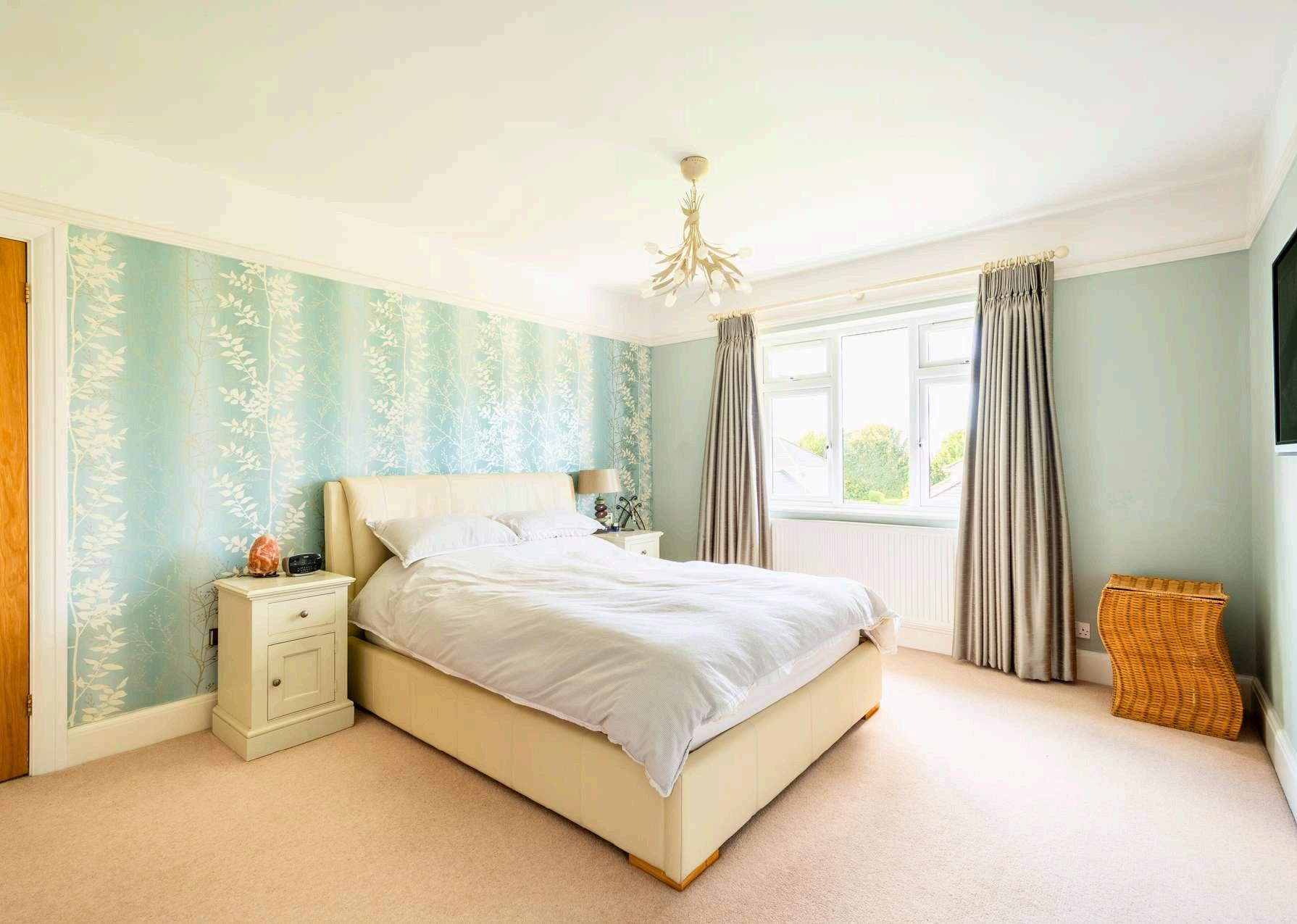 On the first floor, four double bedrooms provide comfortable accommodation, including the master suite, which enjoys delightful views over the garden and beyond. The master also benefits from a walk-in dressing room and a superb en-suite shower room. A well-appointed family bathroom with a bath and separate shower completes this floor. The second floor is home to a spacious fifth bedroom, offering stunning views towards the Channel, along with access to a stylish contemporary en-suite shower room.