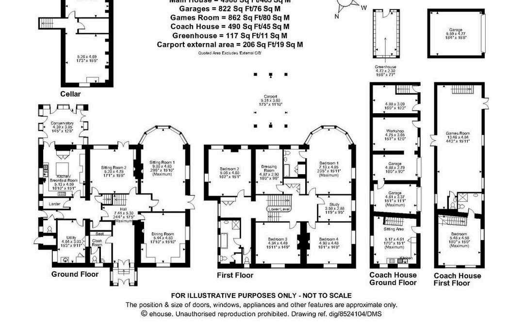 On the first floor the large principal bedroom with its far reaching breathtaking views, has access to a spacious en-suite bathroom with separate shower and a door to the firth bedroom now being used as a superb dressing room. There are a further three bedrooms, again all with views and fitted wardrobes they all share access to a fully fitted family bathroom with a separate shower cubicle.