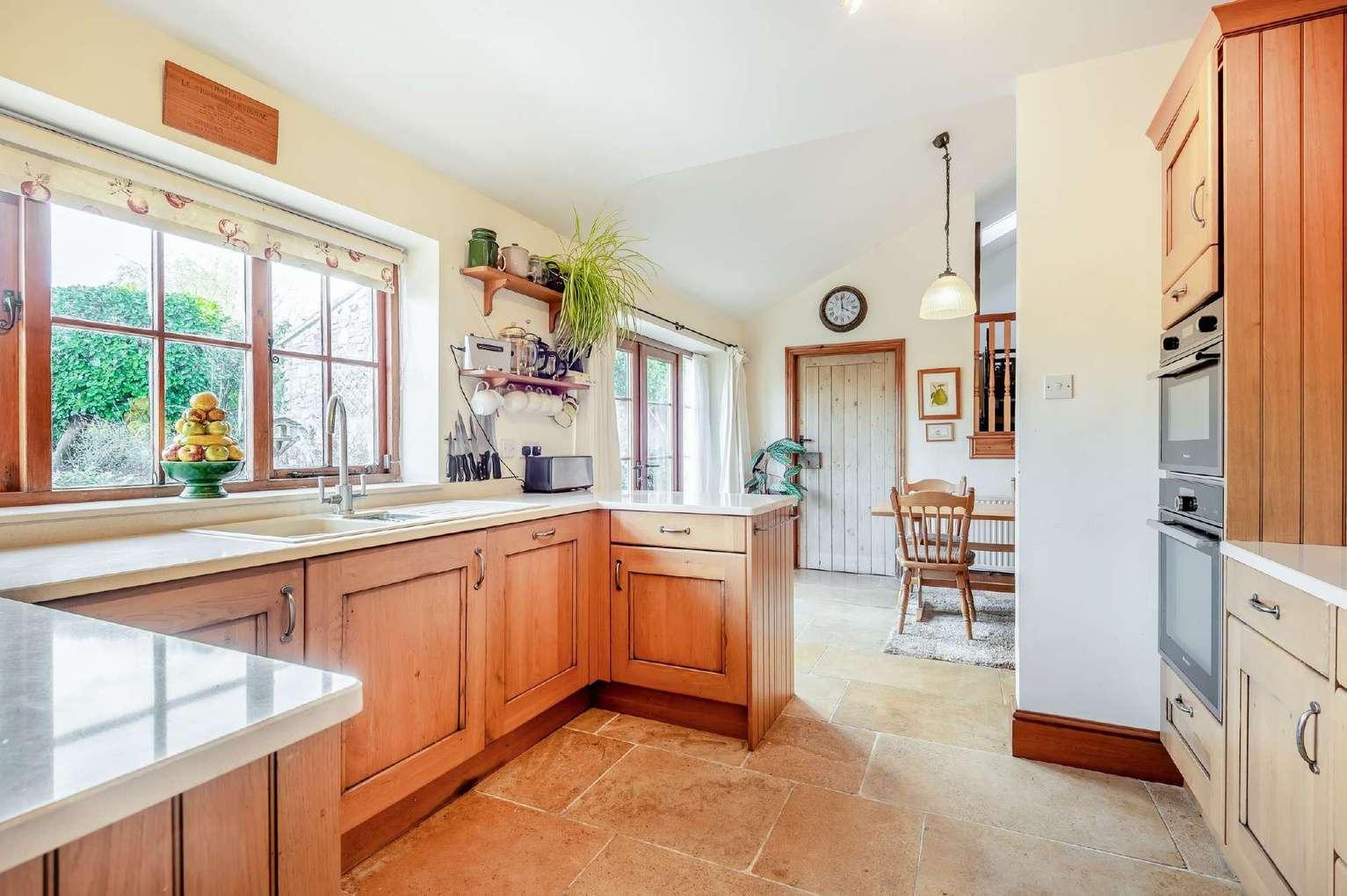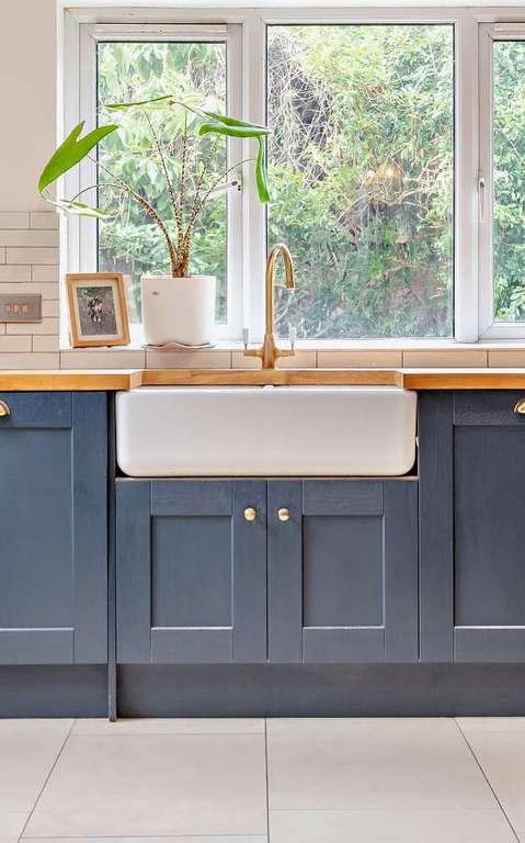 Moving through the house, you'll discover the heart of the home—an incredible kitchen dining family room. This space is a masterpiece of contemporary living, featuring underfloor heating that ensures comfort throughout the year. The blue shaker-style kitchen is a focal point, complete with wooden countertops, a classic Belfast sink, and integrated appliances that cater to your culinary needs. A breakfast bar with perfectly framed exposed steels offers a nod to industrial design, adding a unique and stylish touch. Additionally, there's a convenient wine store tucked neatly under the stairs, ensuring you're always ready to entertain in style.
