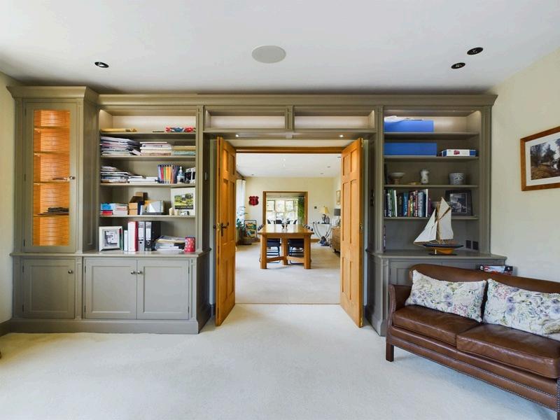 Character features run throughout: light oak and stone floors, period fireplaces, generous windows and views over the gardens that give the whole house a gentle, timeless rhythm. The kitchen / family room is the natural heart of the home – beautifully fitted, sociable, and with enough space for a big farmhouse table and comfortable seating. It’s a kitchen where weekday life, muddy boots, dogs and big gatherings all coexist effortlessly.