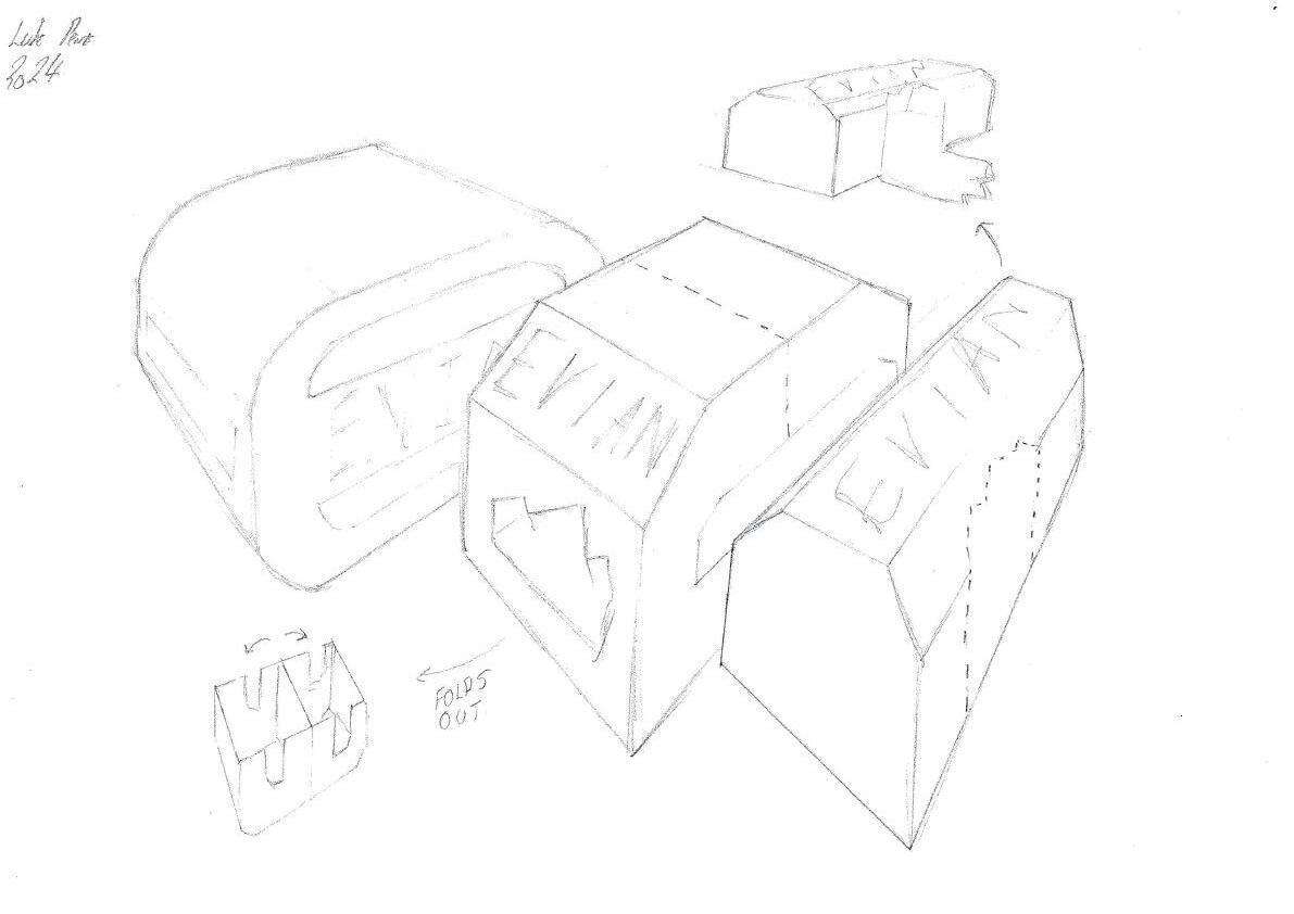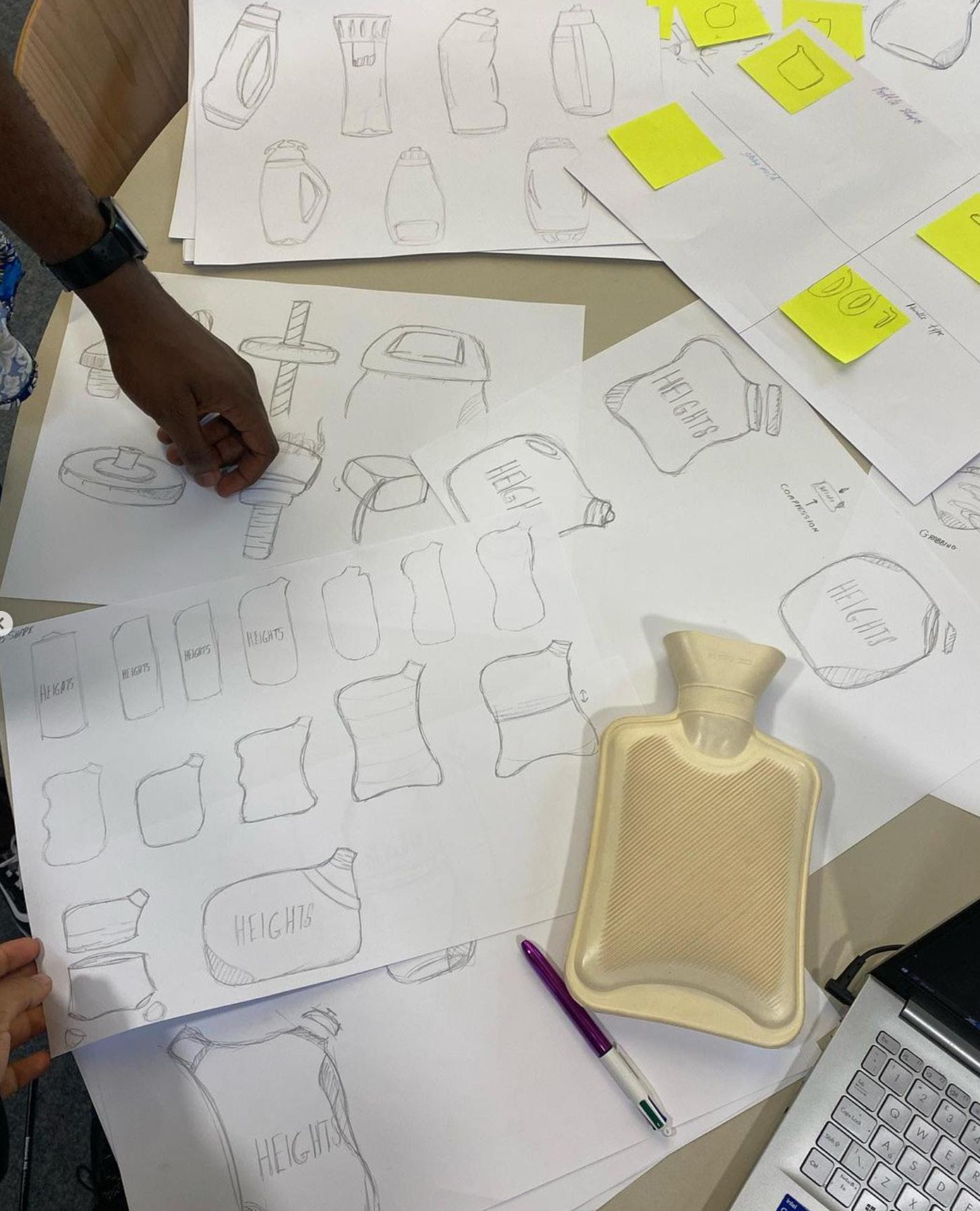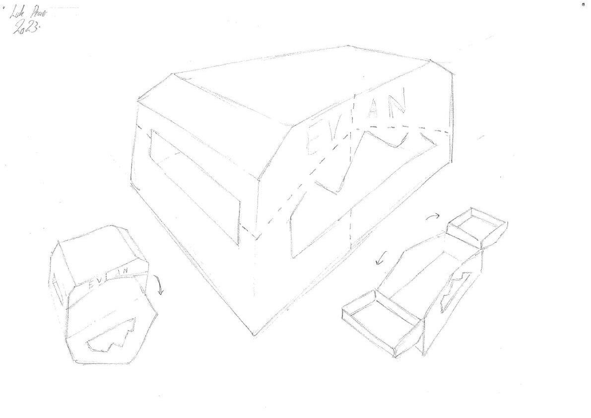 Example set of the sketches that led into the final idea and the final prototype. Looked to stay within the boundaries of typical evian packaging for logistical reasons whilst maintaining that the packaging be able to protect the contents inside.