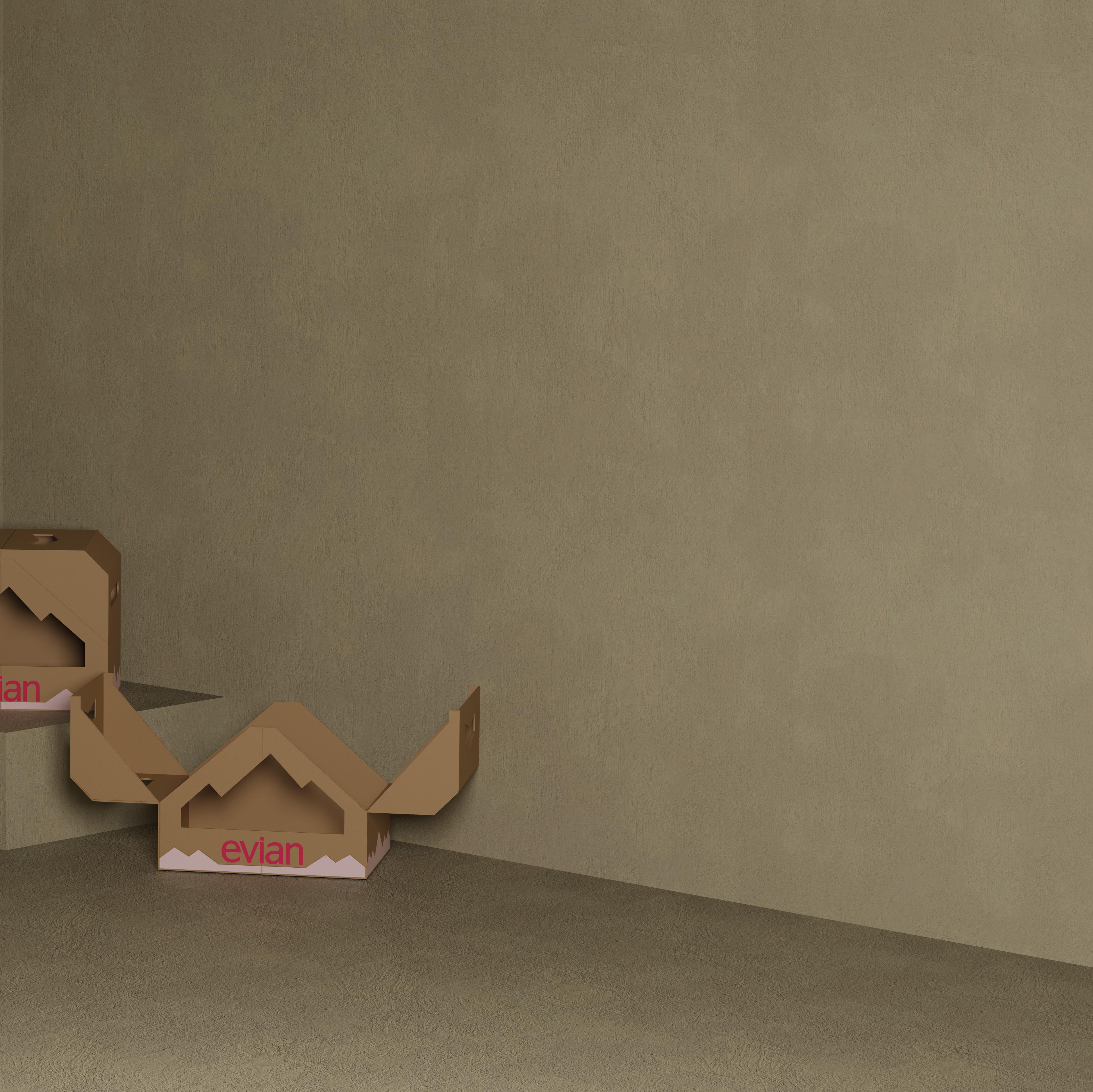 The colours are based on Evian’s logo. However the main hue was to remain cardboards naturally bleached colour for sustainability + cost.