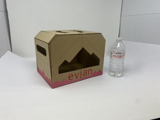 Evian Hold-All is a newer ,more verstaile type of packaging that opens out into multiple configurations whilst still retaining the same specficiations for size + Weight as normal shrink wrap packaging, contributing towards sustainability in packaging.