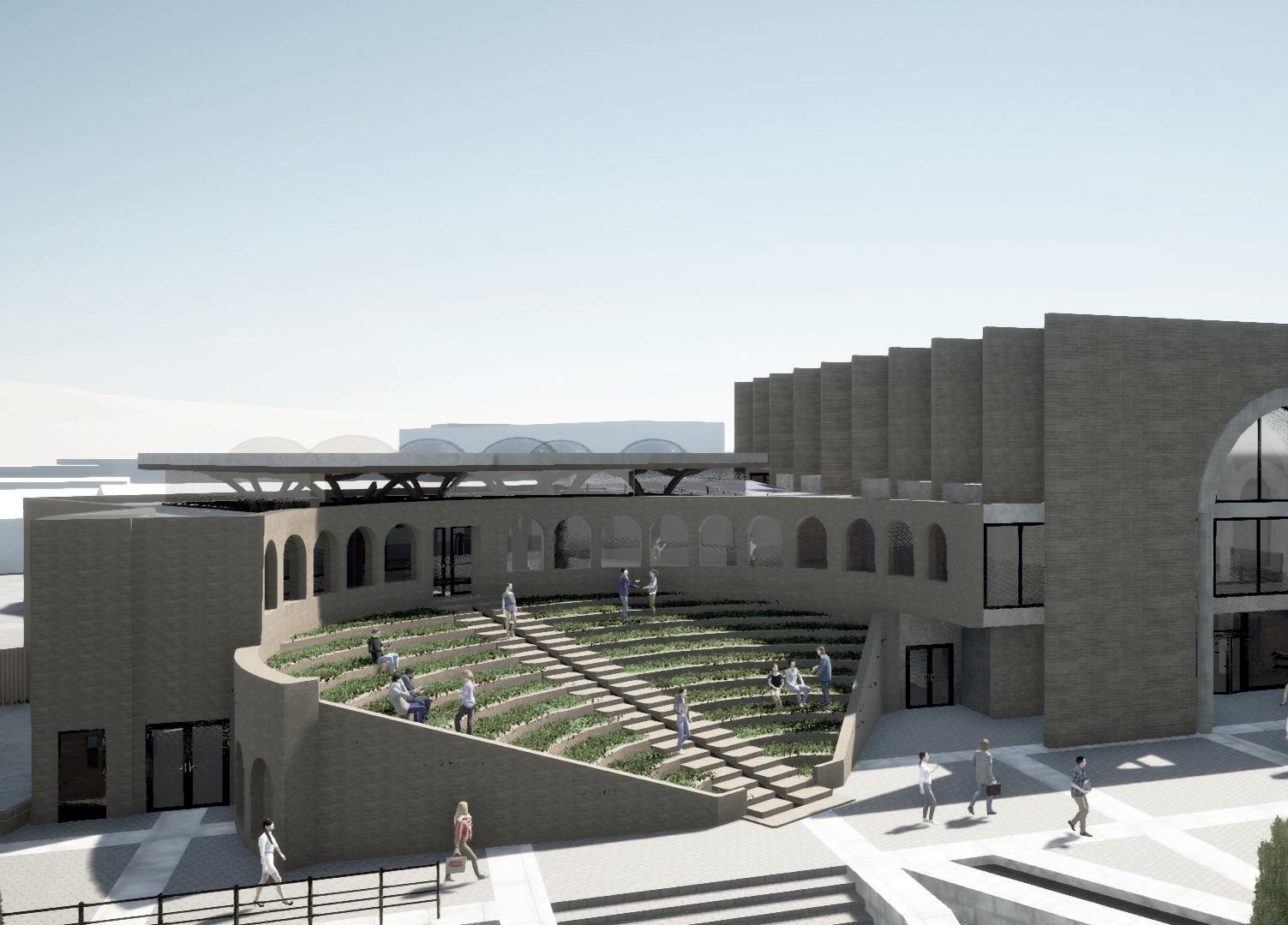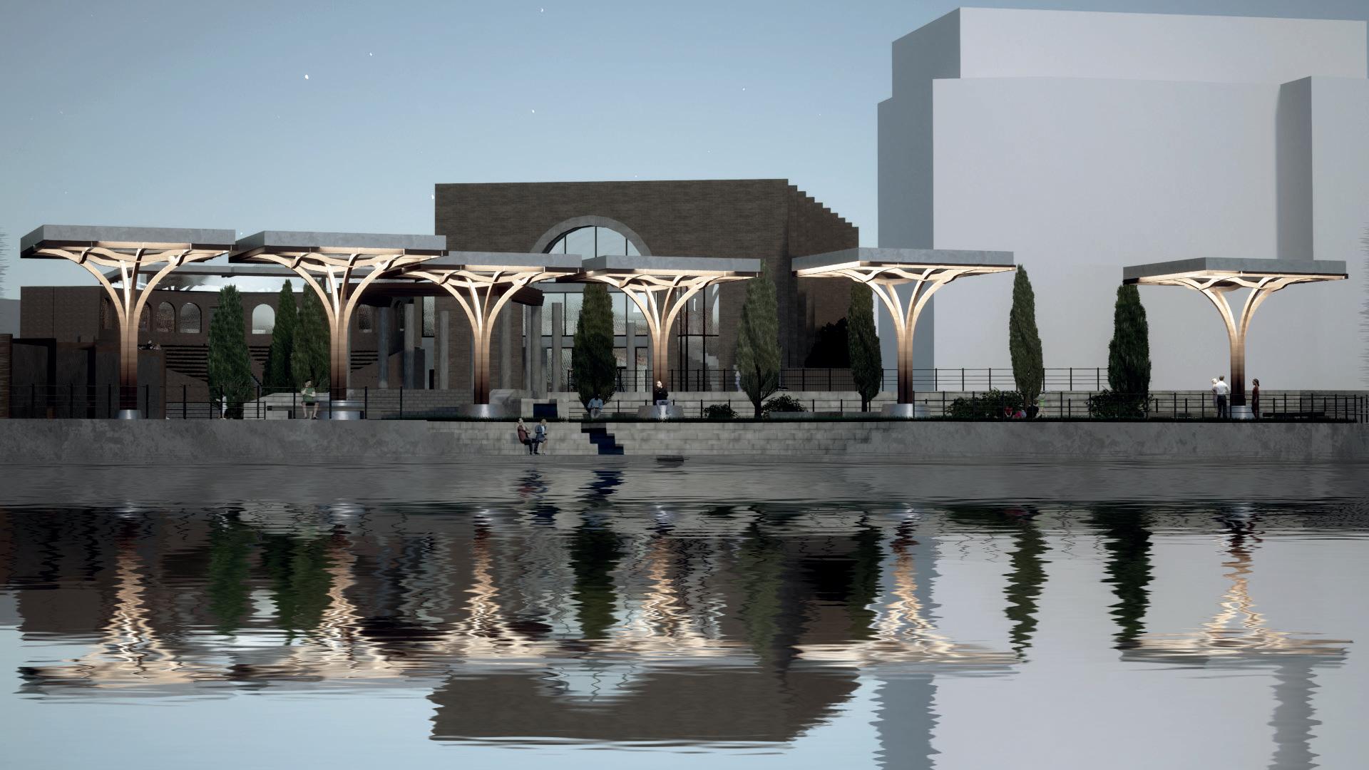 Visual 4: Evening perspective of lower public space.