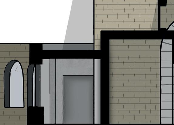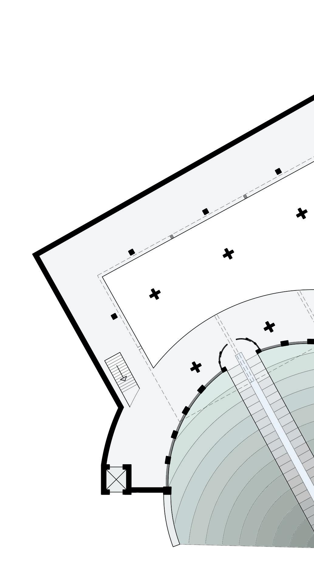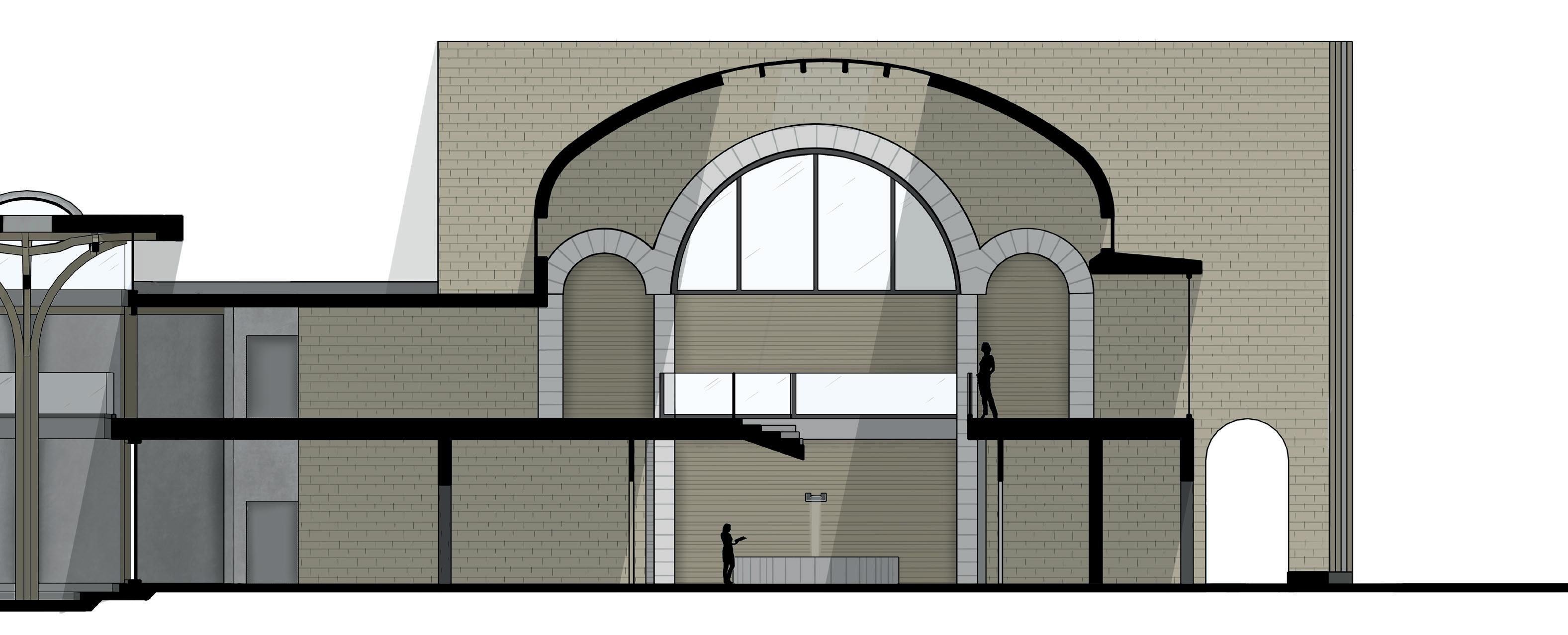 Section through exhibition space and multi functional lecture hall.