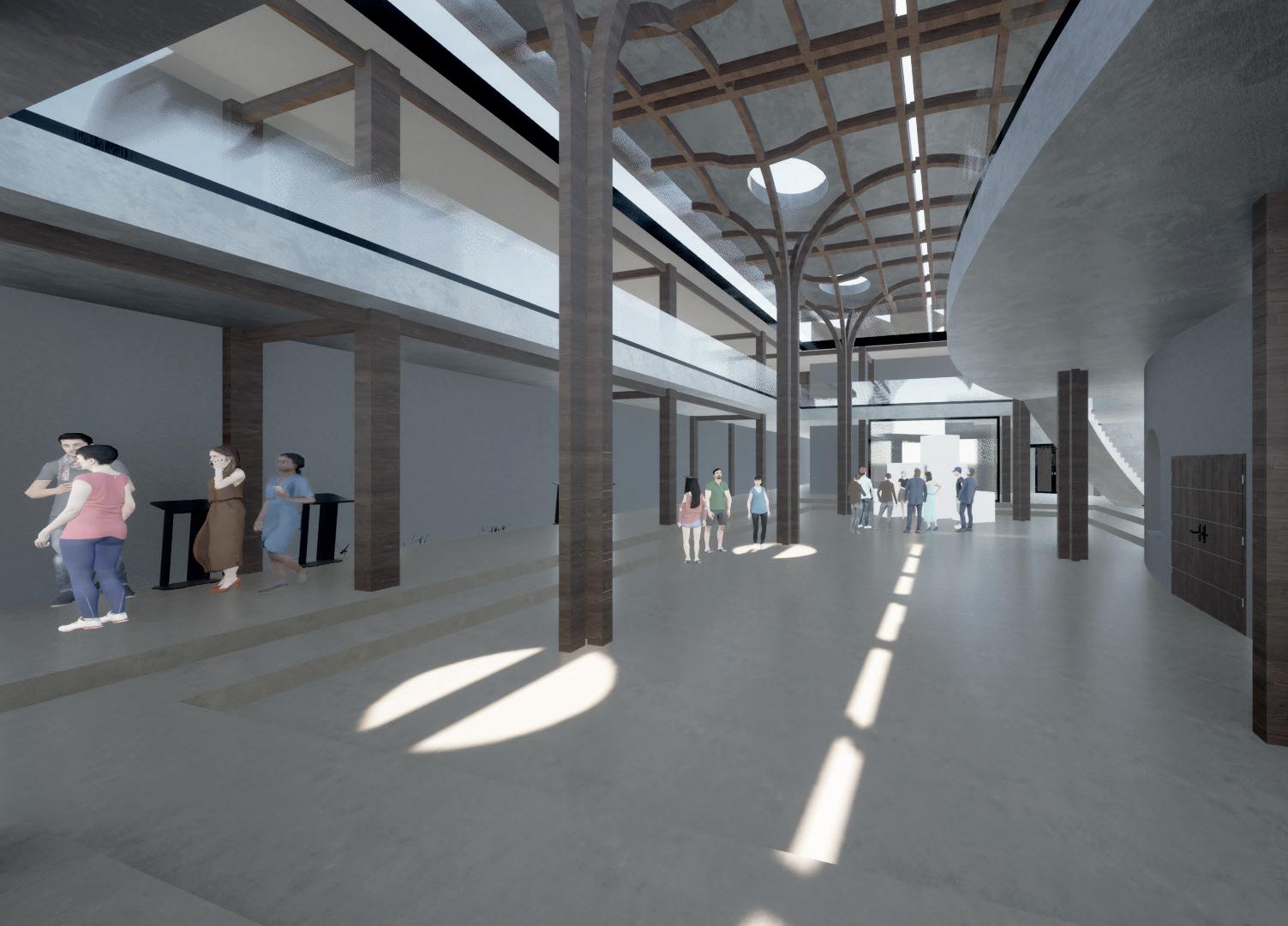 Visual 7: Perspective of tree timber canopy and exhibition space.