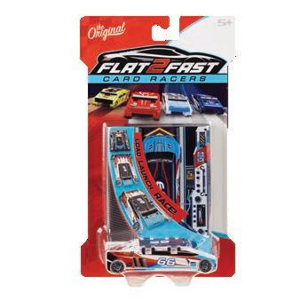Ready, set, launch! Just press the button and watch Flat2Fast Card Racers transform from cards into superfast racing cars! No pull back needed. Flat2Fast are portable and fit perfectly in a pocket or backpack for on-the-go play!