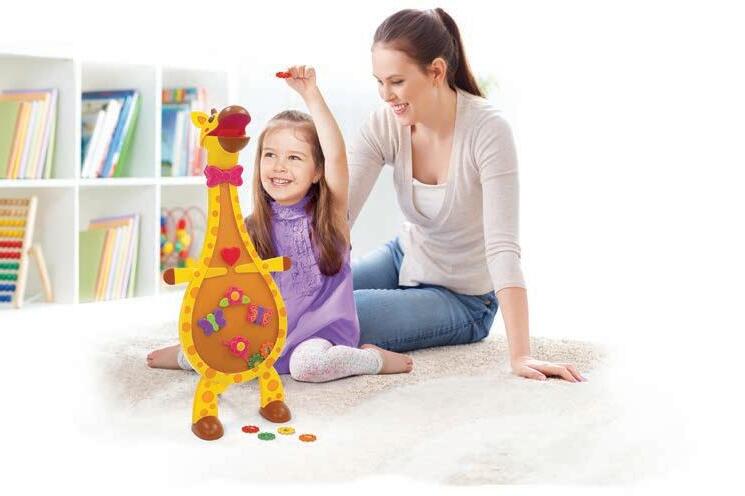 What makes Giselle the Giraffe so big and strong? She snacks on healthy fruits and veggies! Want to encourage kids to eat their fruits and veggies too? Introduce them to Giselle and the Snack Snack Giraffe game! Perfect for family or independent play, kids will have fun trying to get all their snack tokens in Giselle’s belly without them falling out. For 1-4 players, age 3 and up. Includes 12 double-sided snack tokens featuring 24 fruits and vegetables, 12 double-sided flash cards with fun food facts, and instructions. No batteries required.