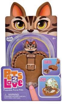Take your beloved pet wherever you go with new Pets 2 Love! Housed in a stylish heart-shaped purse, simply press the button for your lovable pet to pop out and greet you! Open the top of the purse to reveal each pet’s cozy hideaway to play. Plus, the purse strap doubles as a leash to take your adorable companion for a walk. Includes pet, heart-shaped purse launcher, and leash.