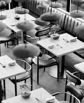 The cafeteria is divided into three different areas, seperated with glass walls to optimize the acoustics.