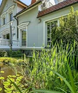 Das Herzstück des Hauses ist der großzügige Wohnbereich, der sich über ca. 67 m² erstreckt. Ein eleganter Kamin sorgt hier für Wärmeund Gemütlichkeit. Von hier aus gelangt man auf eine weitläufige Terrasse, die mit Außenbeleuchtung und einem großen, ausfahrbaren Sonnenschirm ausgestattet ist und direkt in den liebevoll gestalteten Garten führt. Dieser besticht durch einen Gartenteich mit Zierfischen, Altbaumbestandund Formgehölzen sowie einem ausgeklügelten Bewässerungssystem und Gartenbeleuchtung. Der beheizbare Gartenpavillon bietet ideale Bedingungen für Entspannung im Freien, auch bei kühleren Temperaturen.