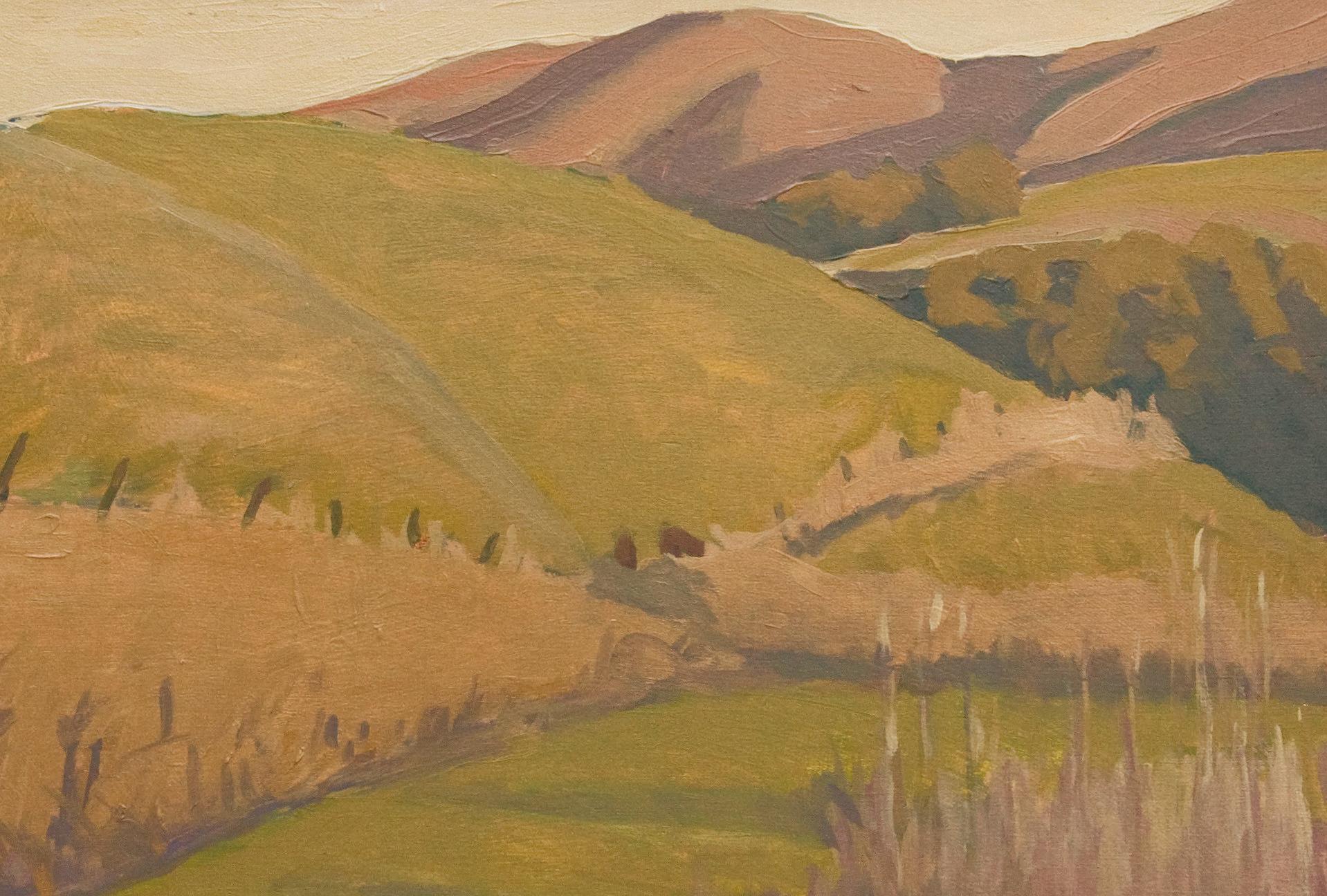 Smith’s paintings refect the complex counterbalance of asymmetries found in the dynamic forces of nature. She explores balance, examining patterns in our environment. Subtle variations of complementary hues and warm and cool rhythms of light create an equivalence on all sides of the canvas. She is not just recording nature, but feeling its rhythms and changing seasons, infuenced by her solitary walks and direct relationship with the environment in California. 593