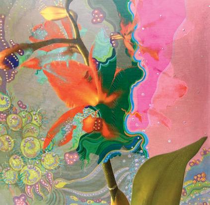 My work explores plants that could have existed in prehistoric times or in exotic corners of the world. Birds and bees are foragers of specimens appearing in fctitious feld notes, a guide into a dreamlike setting, luminous and at times slightly menacing, with a reference to current environmental impacts. 130 Cedar Lane, Santa Barbara, Cynthia James, (805) 698-8790, cjamesfneart.com