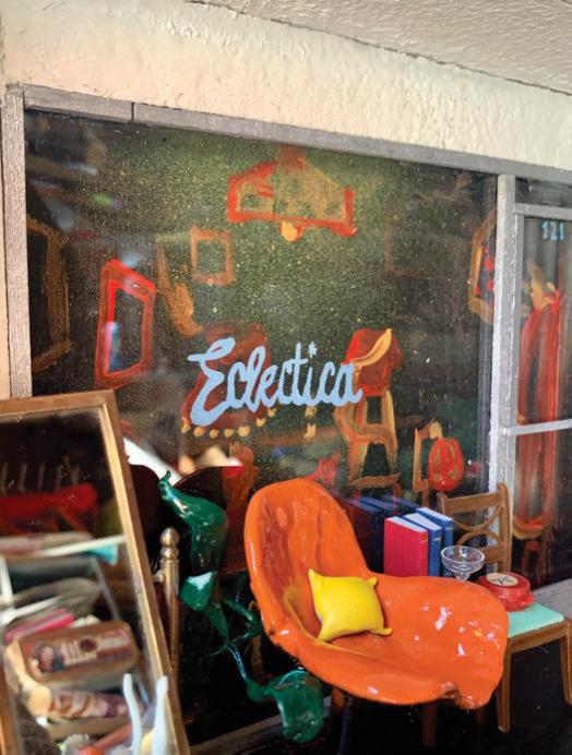 Photographer Matthew Straka says the Rondo is a “harbor for artists of the beaten path.” Straka’s portfolio features playful compositions: a cactus in a bathtub, a pair of abandoned orange sneakers, fowers poised as if having a chat. A self-described collector, Straka is currently using cigar boxes to frame his photographs. He admits to an accumulation of paraphernalia in his corner of the Rondo.