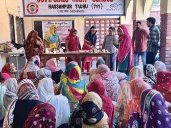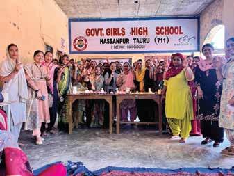 This Diwali, Lumax Charitable Foundation (LCF) empowered rural women in Hassanpur through Candle Making training, fostering new skills beyond their daily chores. Over 30 women participated. LCF also collaborates with Govt. Girls High School in Hassanpur, engaging students in various activities. The trained women, excited to learn, received materials for Para n Wax, Gel and Soya Wax Candle making with di erent aromas and colors. They were taught packaging and encouraged to explore sales opportunities. The women candle-making success story began when they sold creations locally, earning Rs 25,000. Impressed by their designs, the M3M Group Project Manager placed an order for 15,000 candles. Despite challenges in material sourcing and city travel, supported by them families, the women managed the entire process from procurement to production, ensuring profitability.