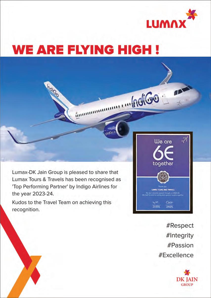 Lumax Tours & Travels has been recognised as “Top Performing Partner” by Indigo Airlines for the year 2023-24.