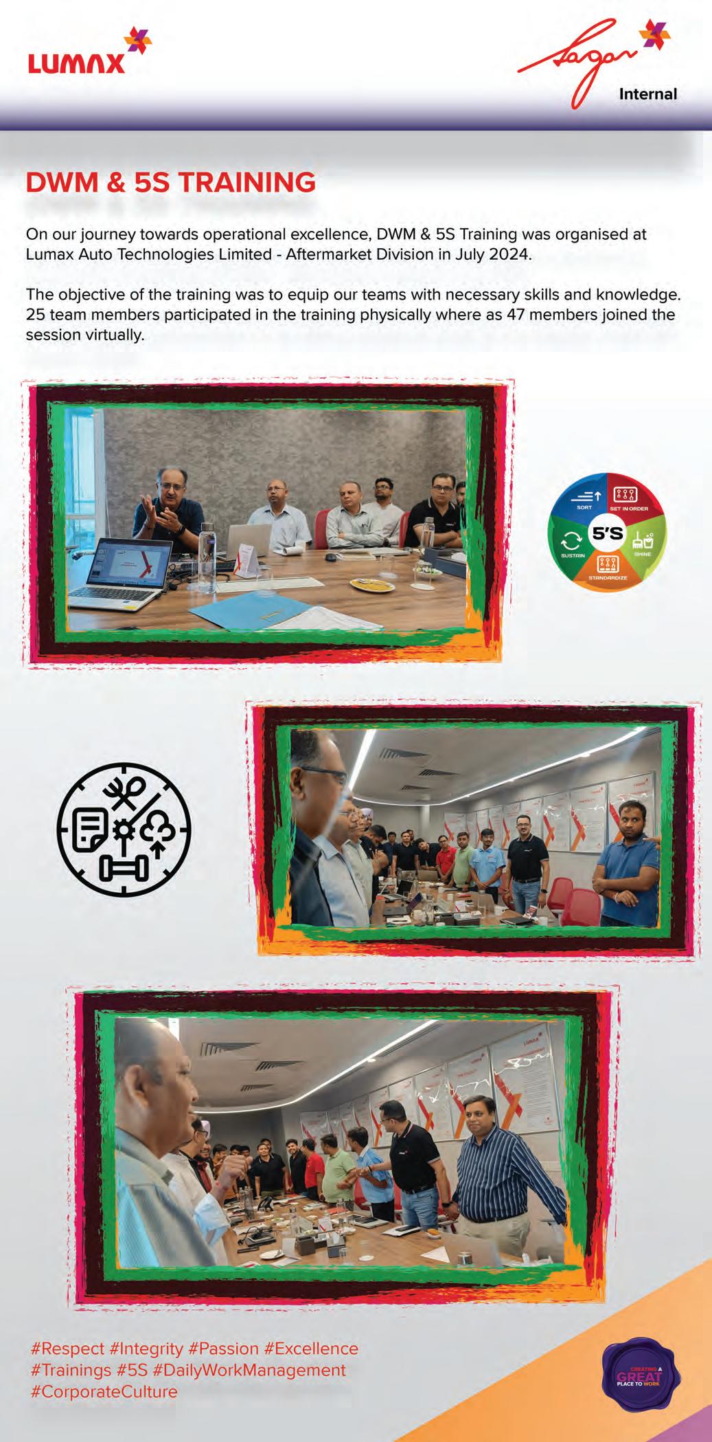 IAC Manesar employees attended Standard Work and Kaizen training at Lumax, aimed at boosting operational practices, including takt time and work sequence, to ensure safety, reduce accidents, and maintain consistent performance. Kaizen training emphasised "change for the better."