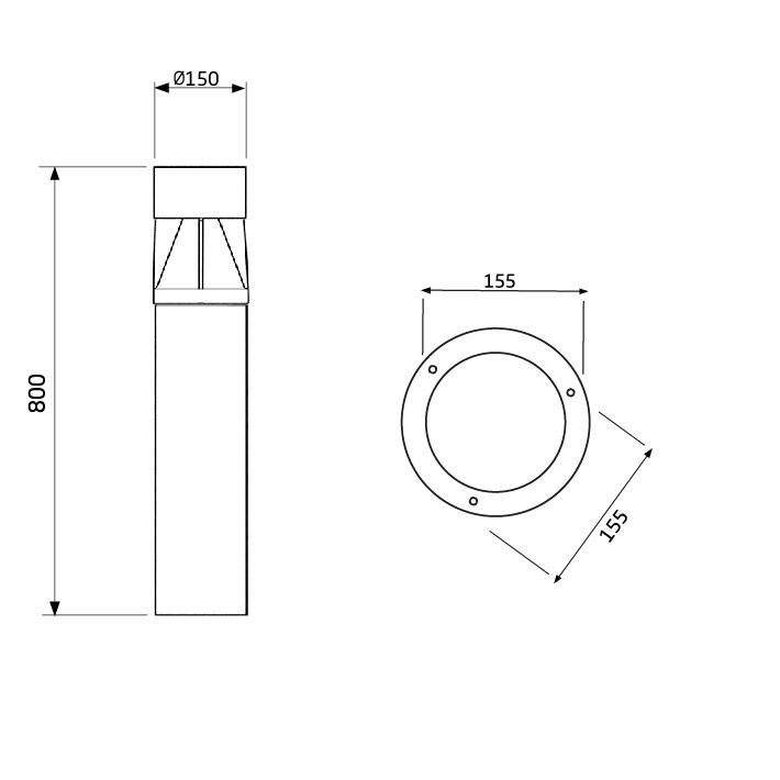 Lineær: Ø150 x H800 mm (custom heights possible)
