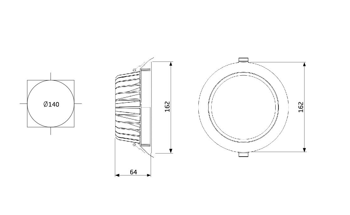 Lineær: L600, 1200 or 1500mm x W160 x H50 mm