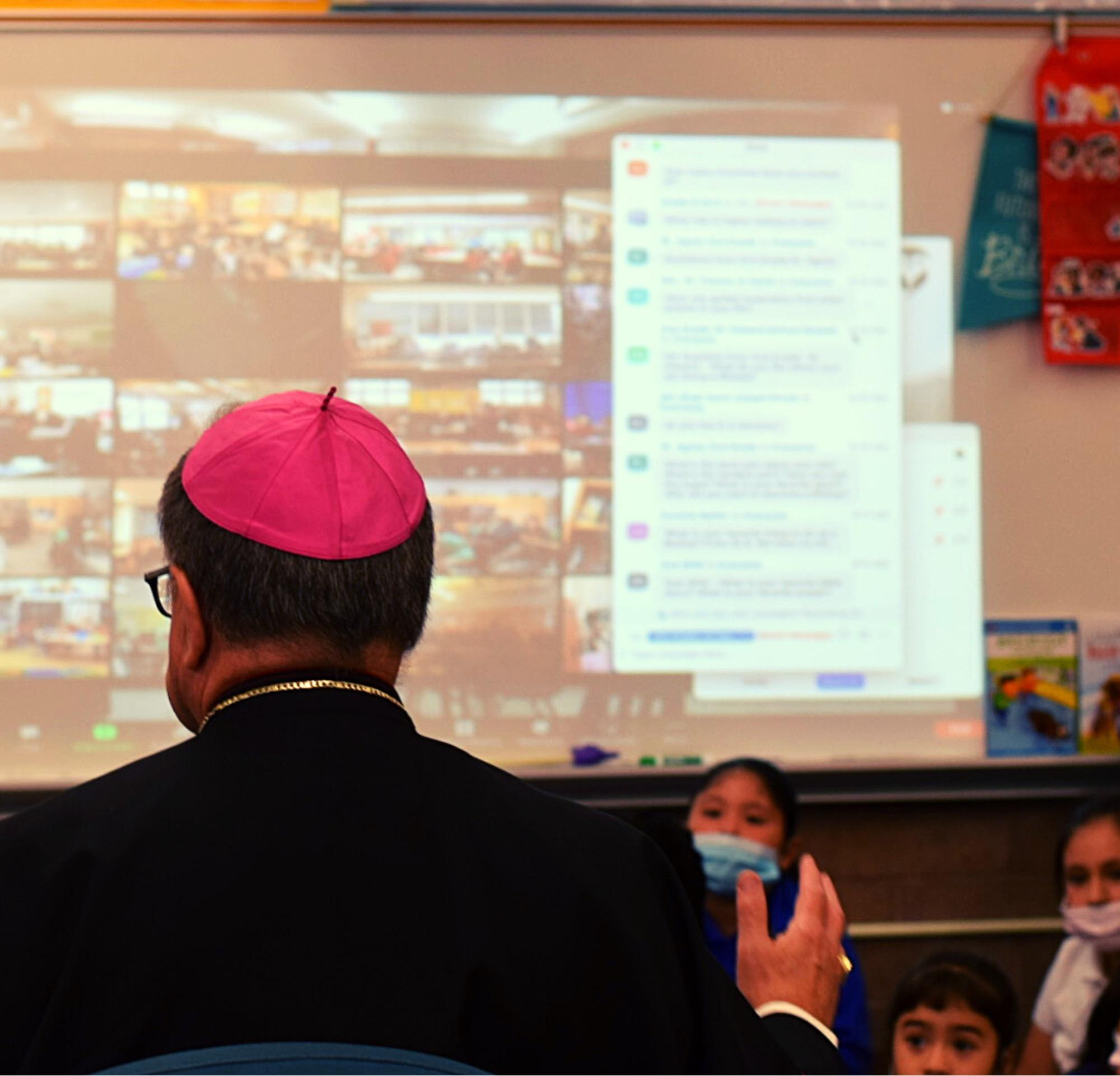 Over 70 classrooms from across the Diocese of Oakland gathered remotely via Zoom for the event. Bishop Barber did an amazing job answering questions as they came in from St. Elizabeth’s 2nd Graders as well as the students on Zoom. They learned about the pet Bishop had as a child, his path to the priesthood and some of his interests and hobbies.